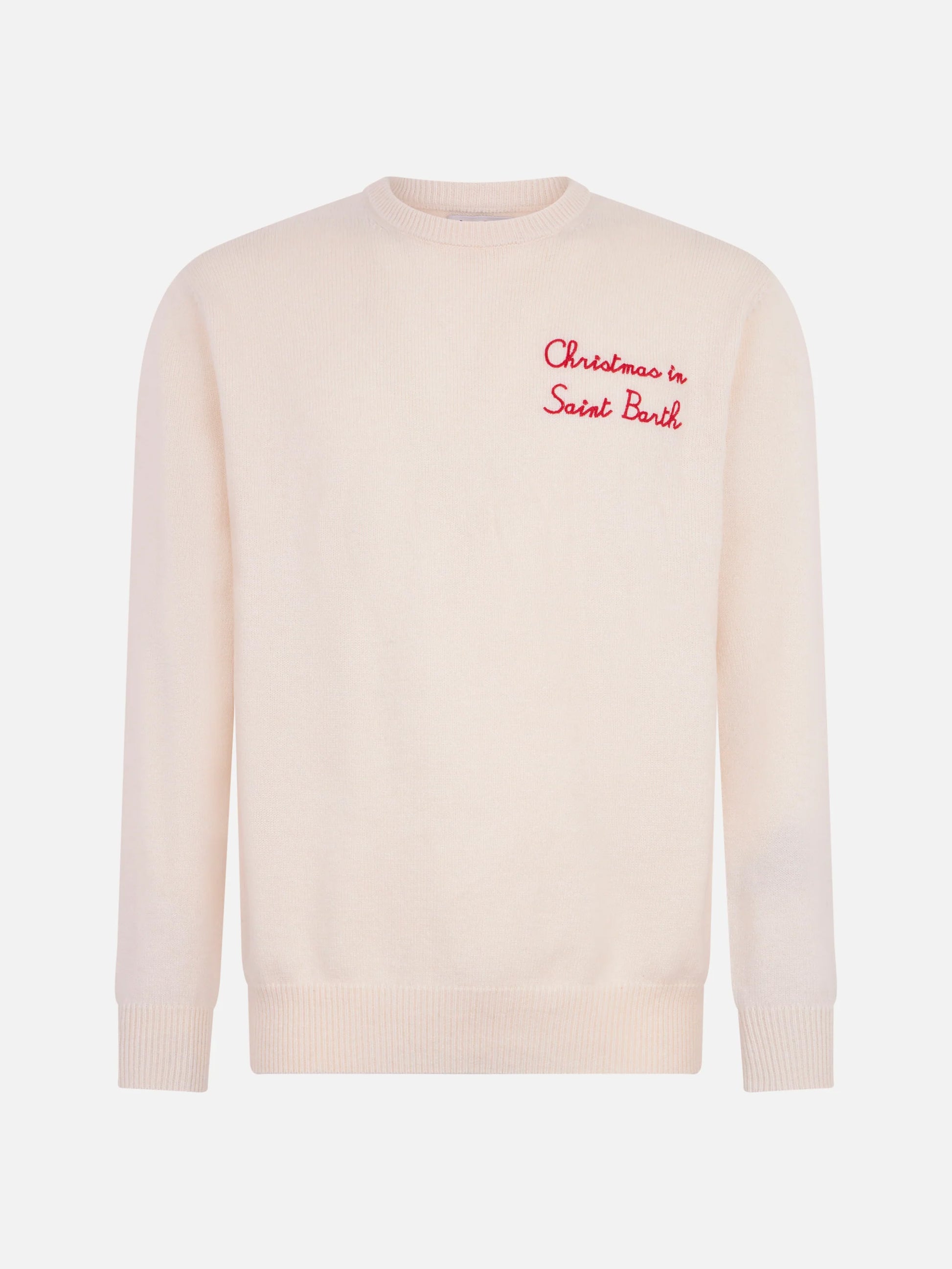 Maglione girocollo Heron con ricamo Christmas in Saint Barth