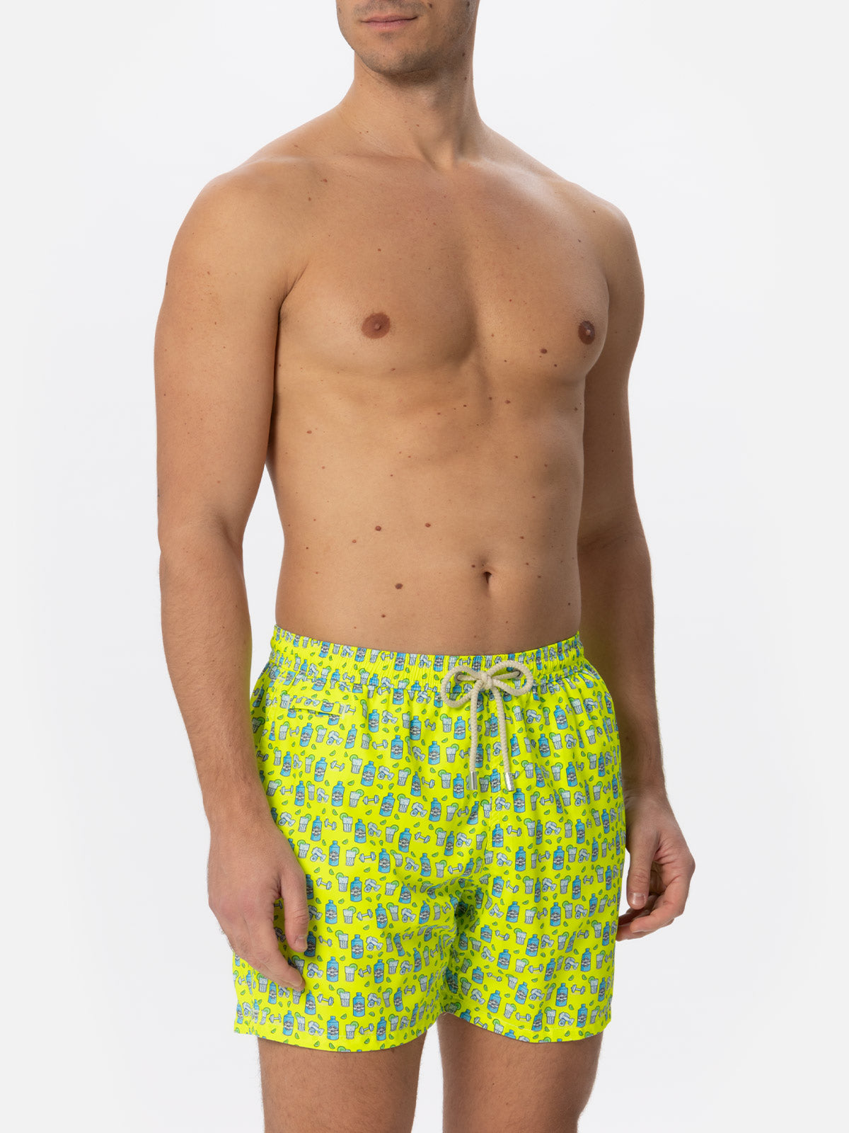 Costume da bagno da uomo in tessuto leggero con stampa gin