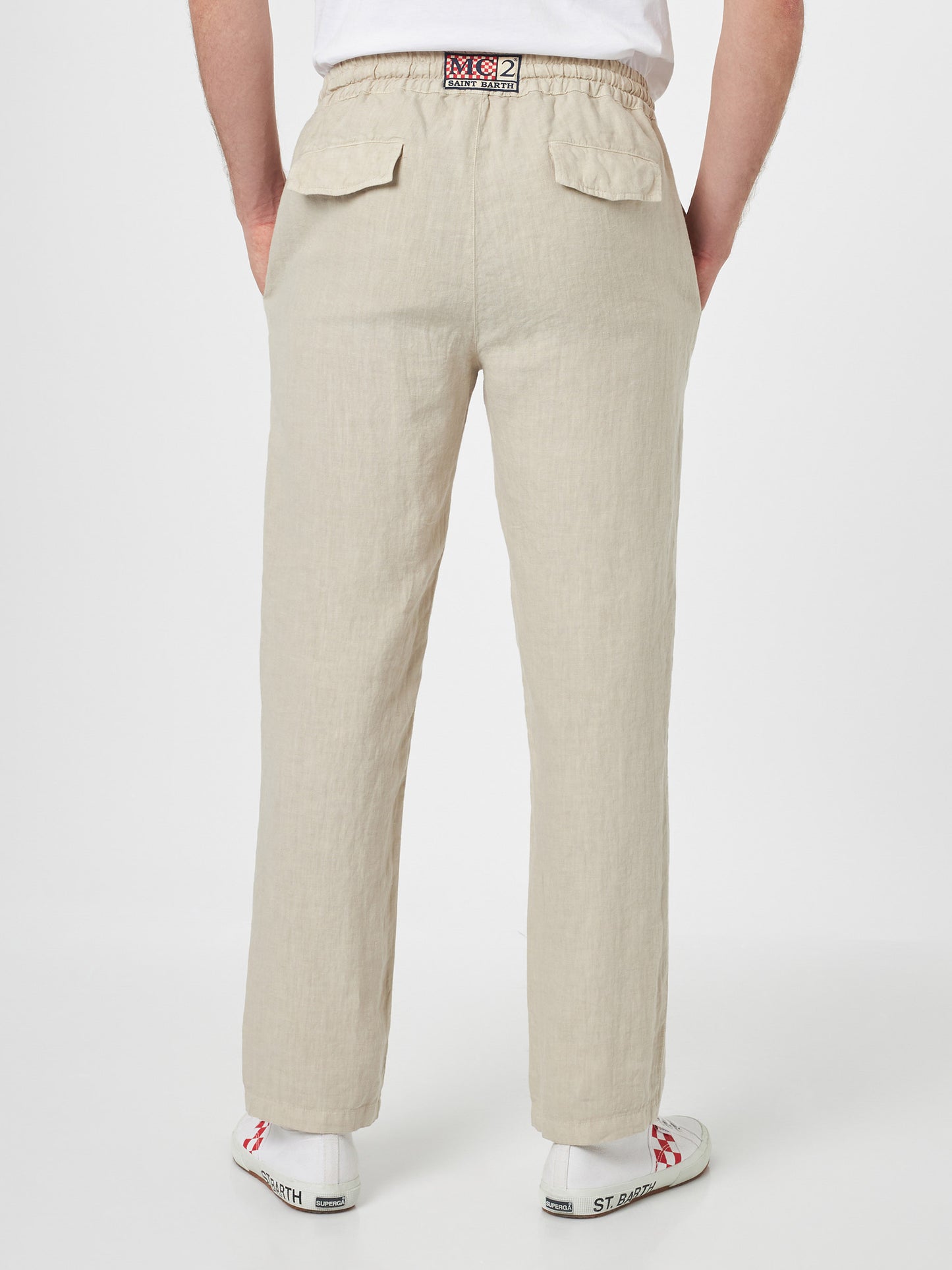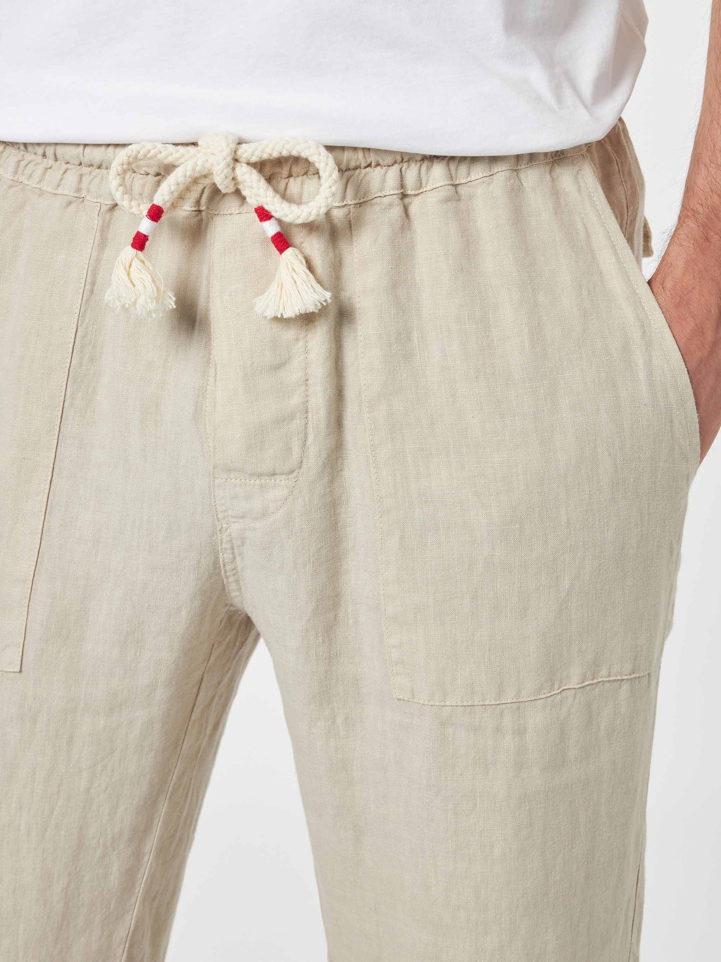 Pantaloni da uomo Calais in lino bianco sporco con coulisse