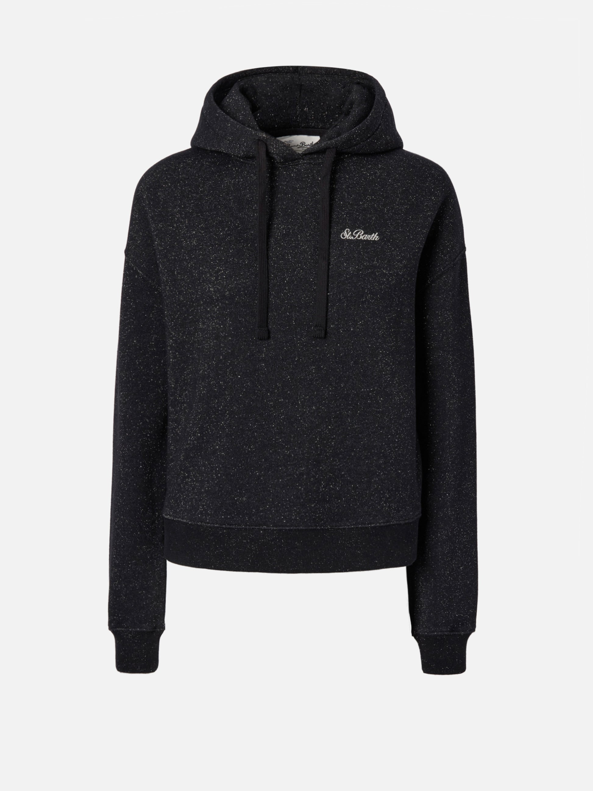Felpa Mindy in misto cotone e lurex nero con cappuccio