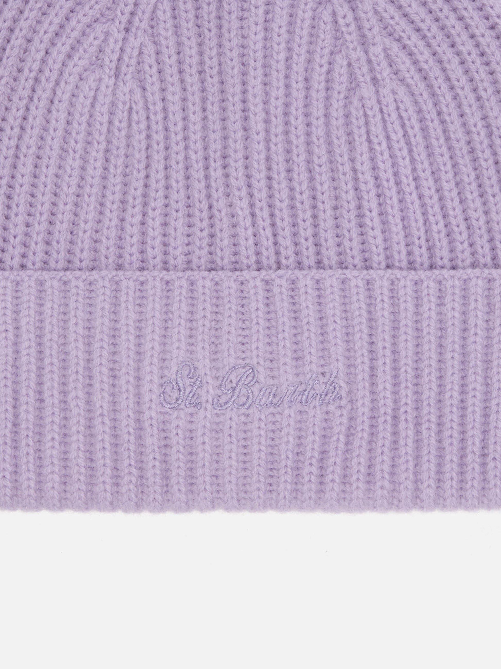 Berretto Moss in maglia lilla a coste con ricamo St. Barth