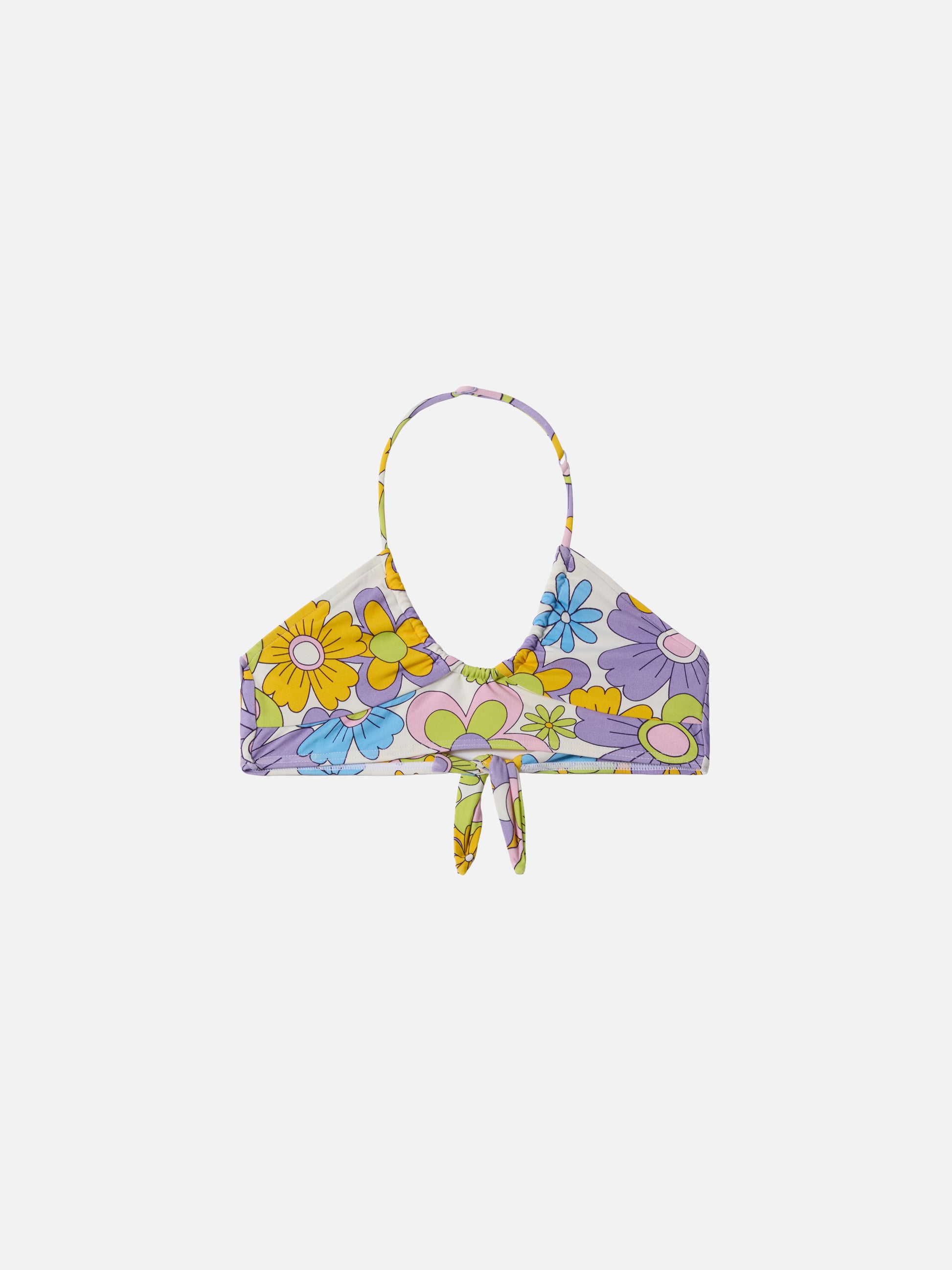 Colorato e giocoso, il crop top Page Jr aggiunge un tocco vivace ai look estivi. Realizzato in morbido tessuto stretch, assicura comfort e libertà di movimento. Spalline da annodare al collo e sulla schiena. La stampa fiori hippie all-over accentua l’anima rétro, ideale con i flare coordinati.