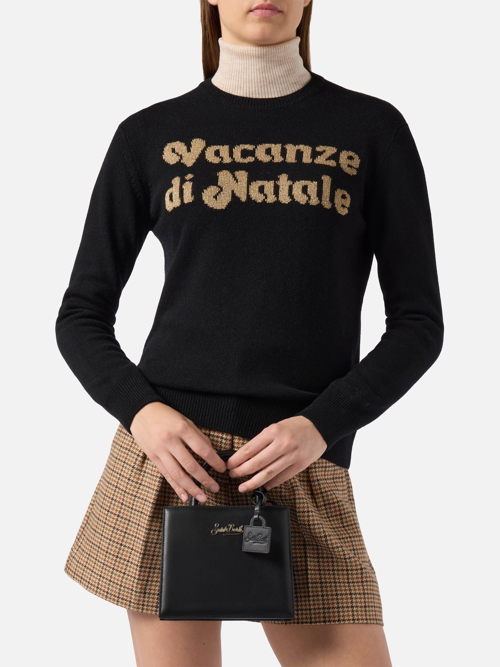 Maglione New Queen in misto cashmere nero con ricamo Scelgo sempre quello sbagliato