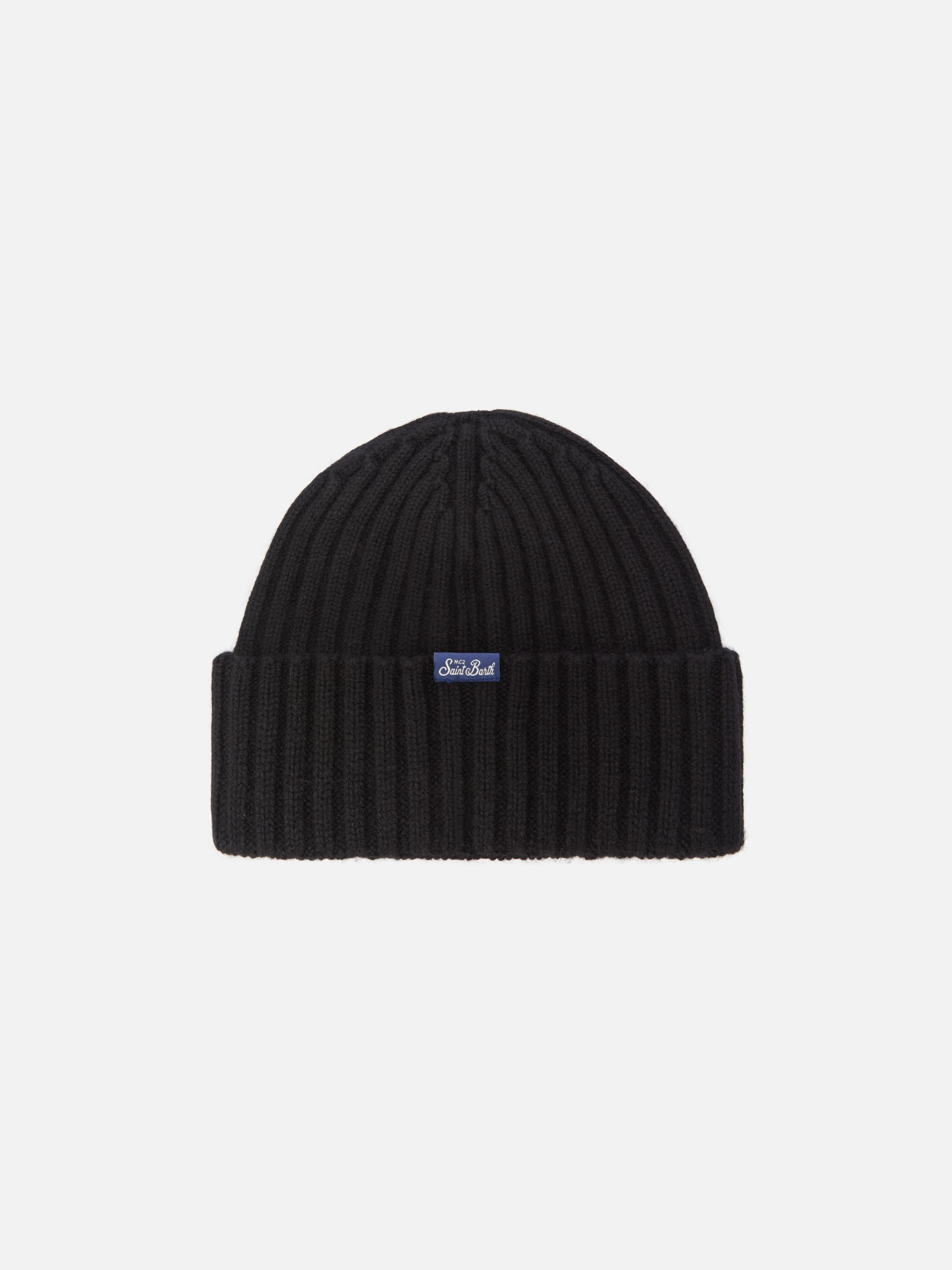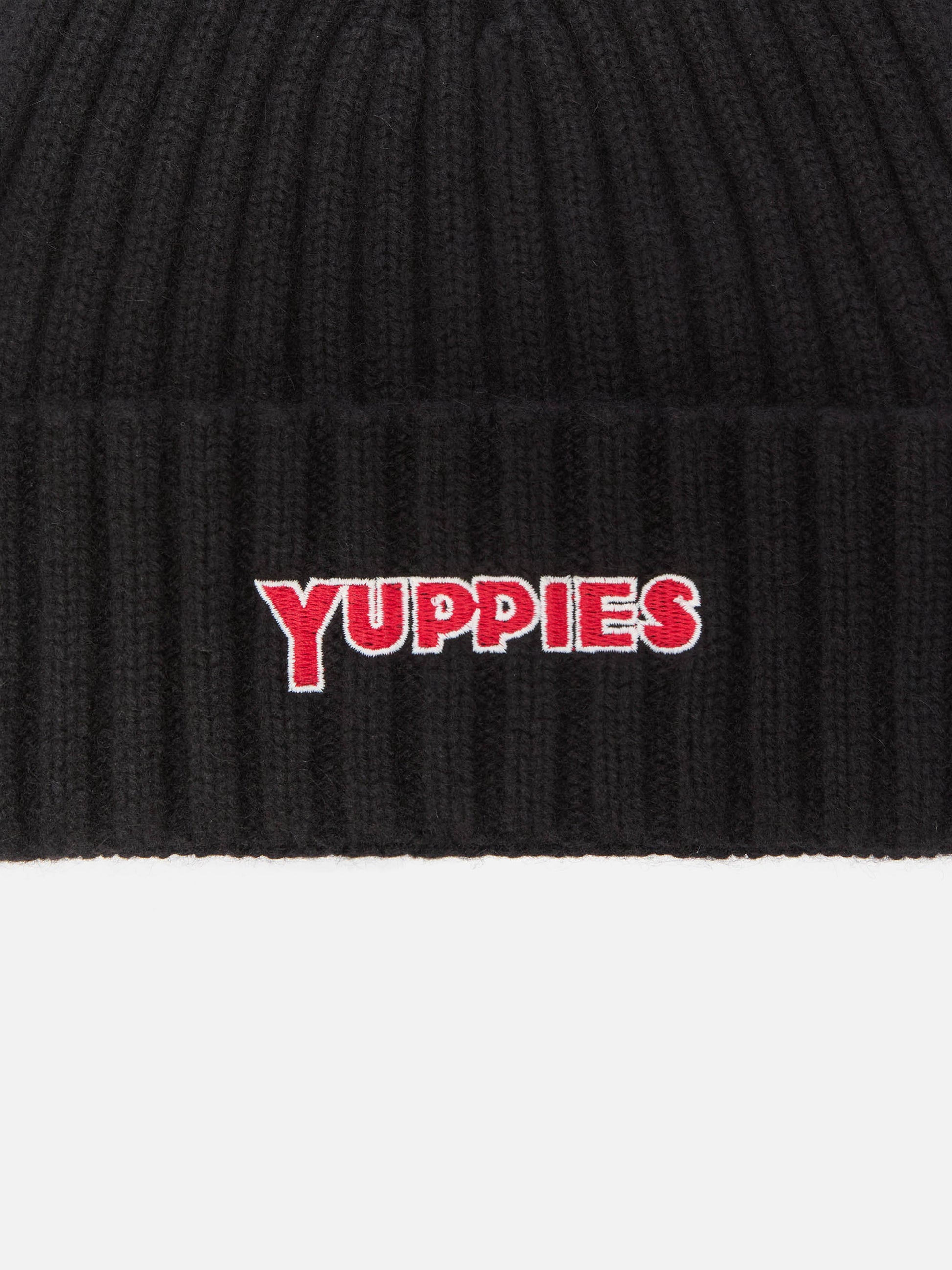 Berretto Wengen in misto cashmere nero con ricamo Yuppies