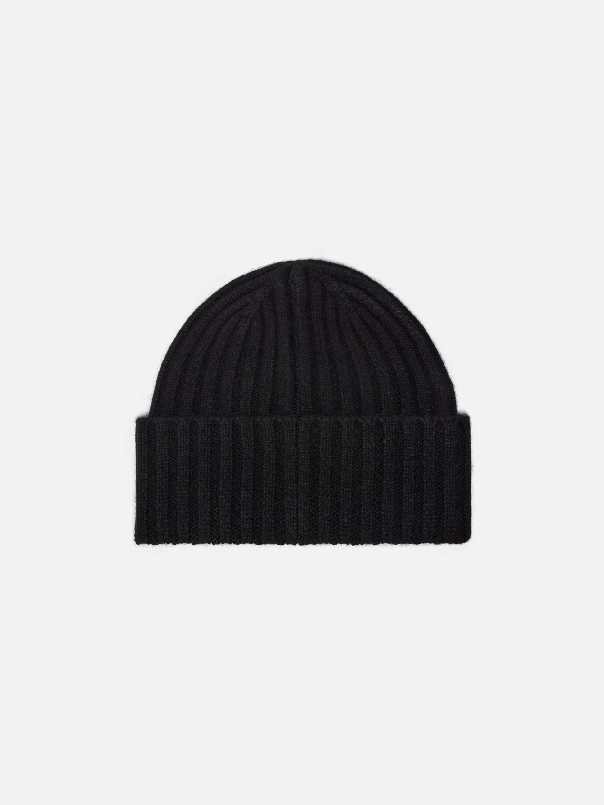 Berretto Wengen in cashmere nero con Ricamo St. Barth sul risvolto