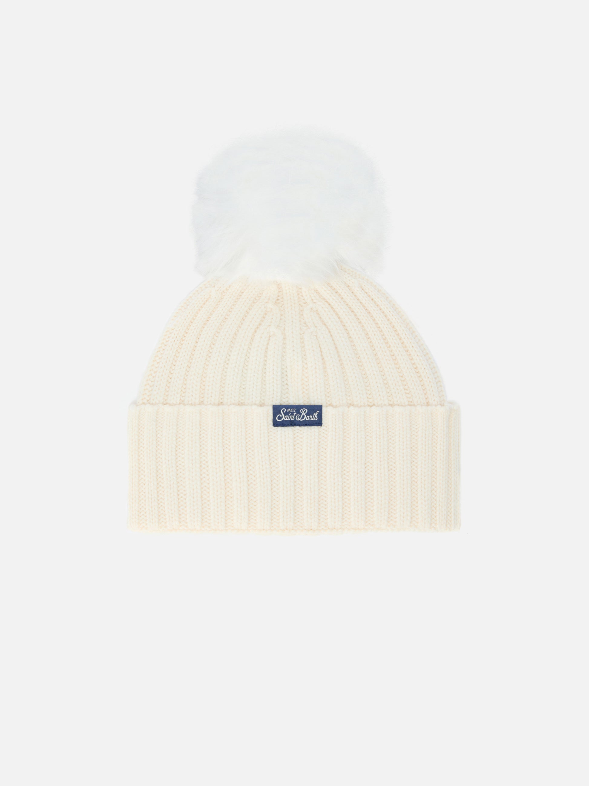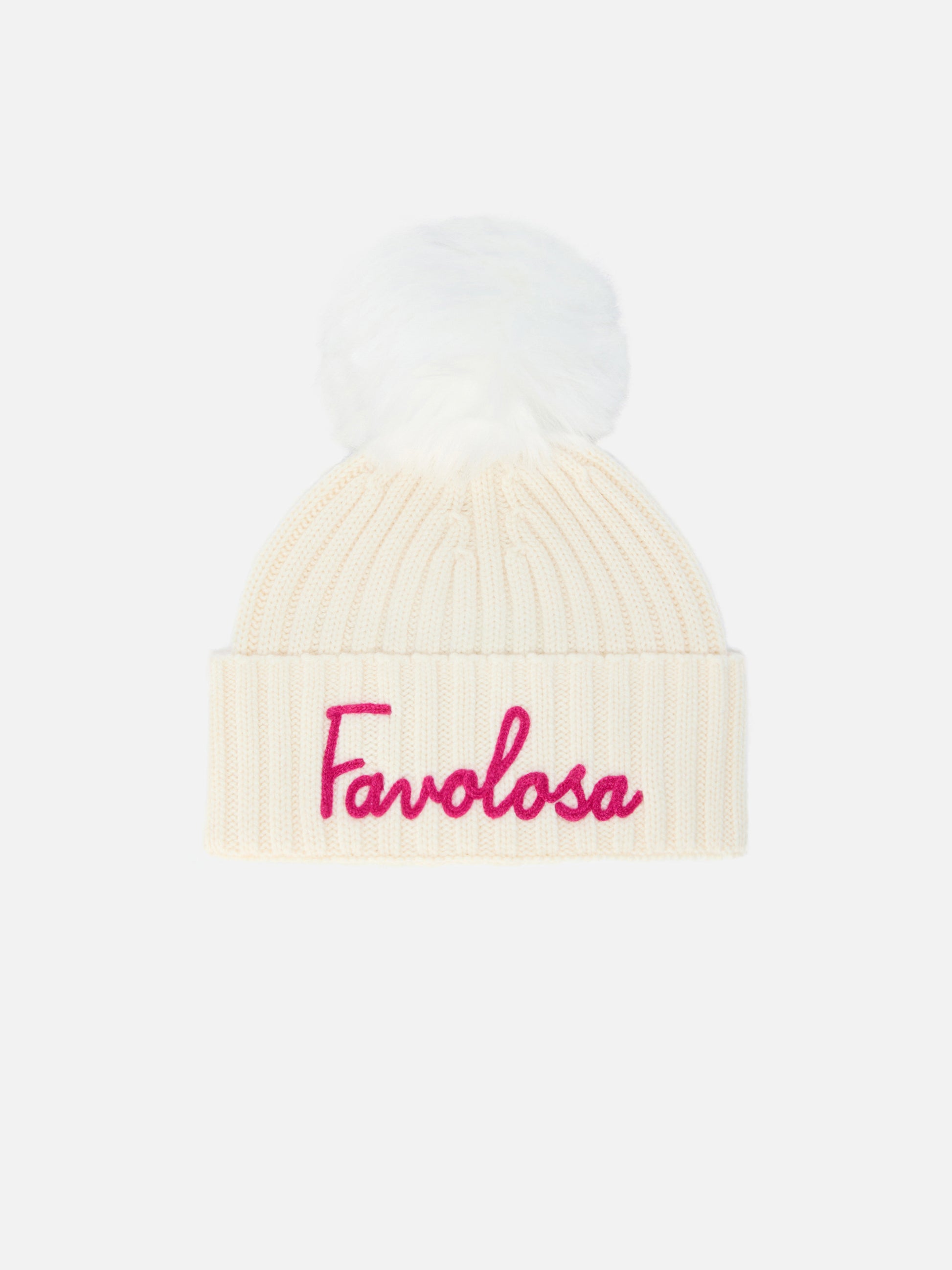 Berretto Wengen Jr F in misto cashmere bianco con ricamo Favolosa