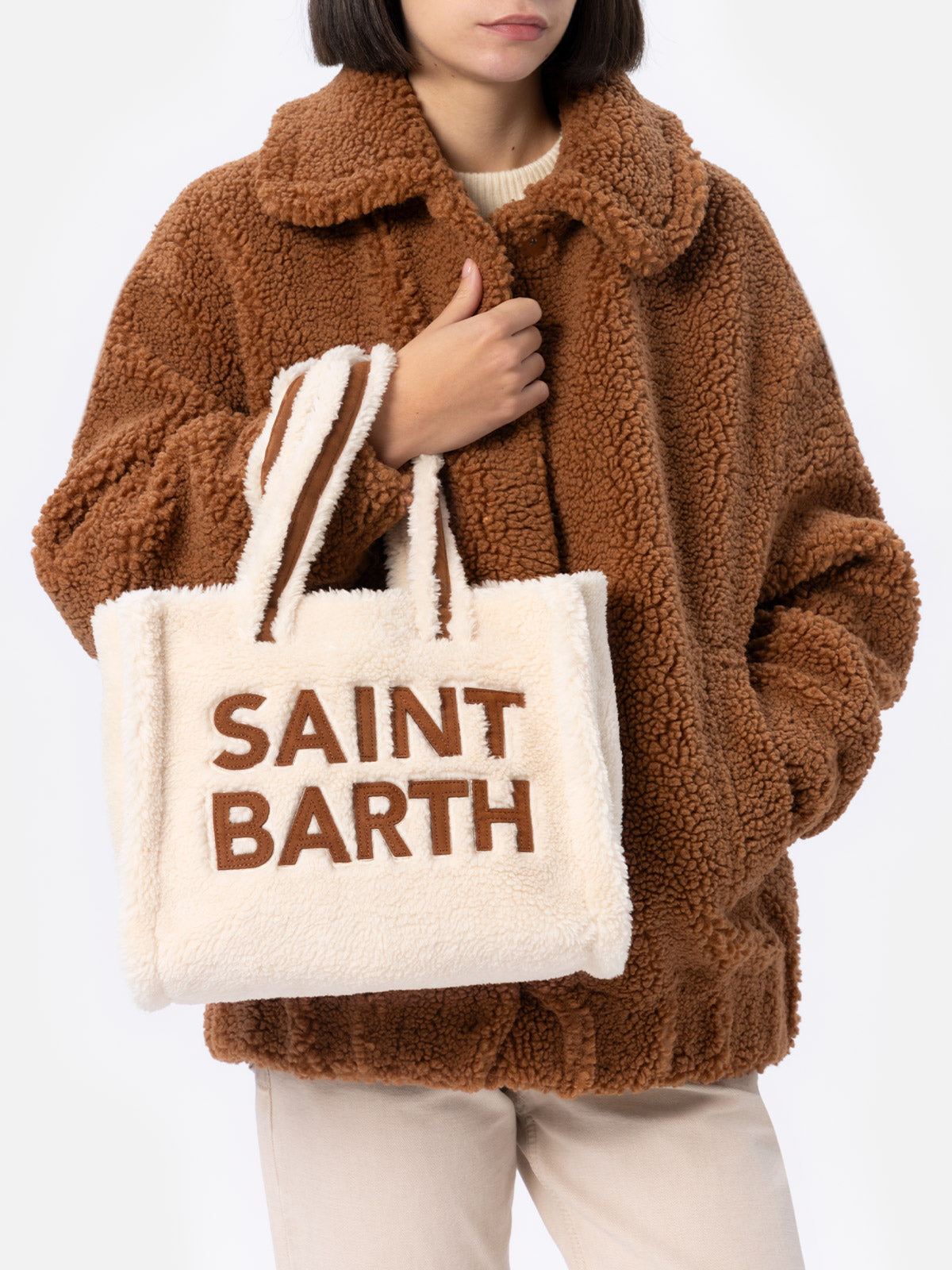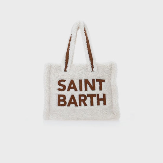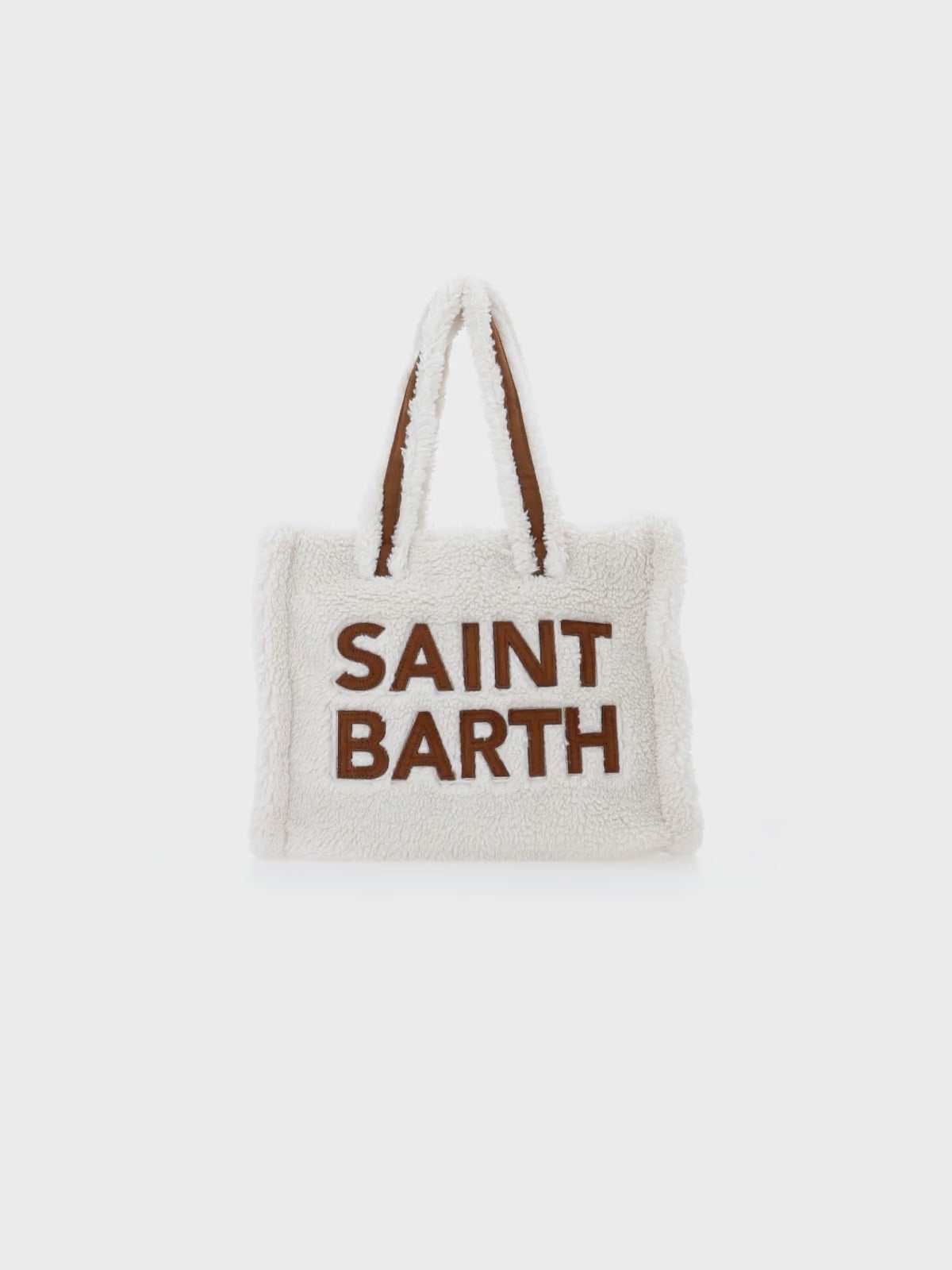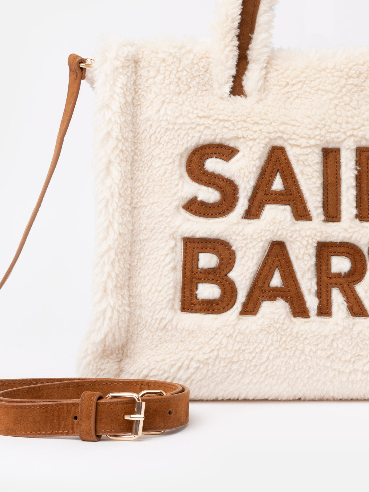 Borsa piccola morbida bianca Teddy con logo Saint Barth e tracolla