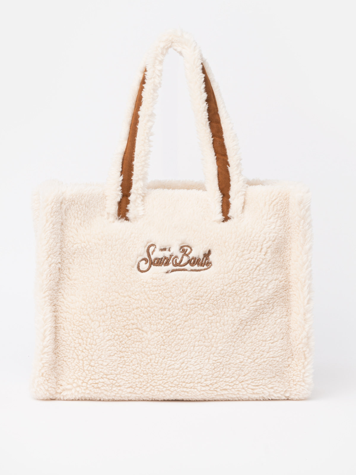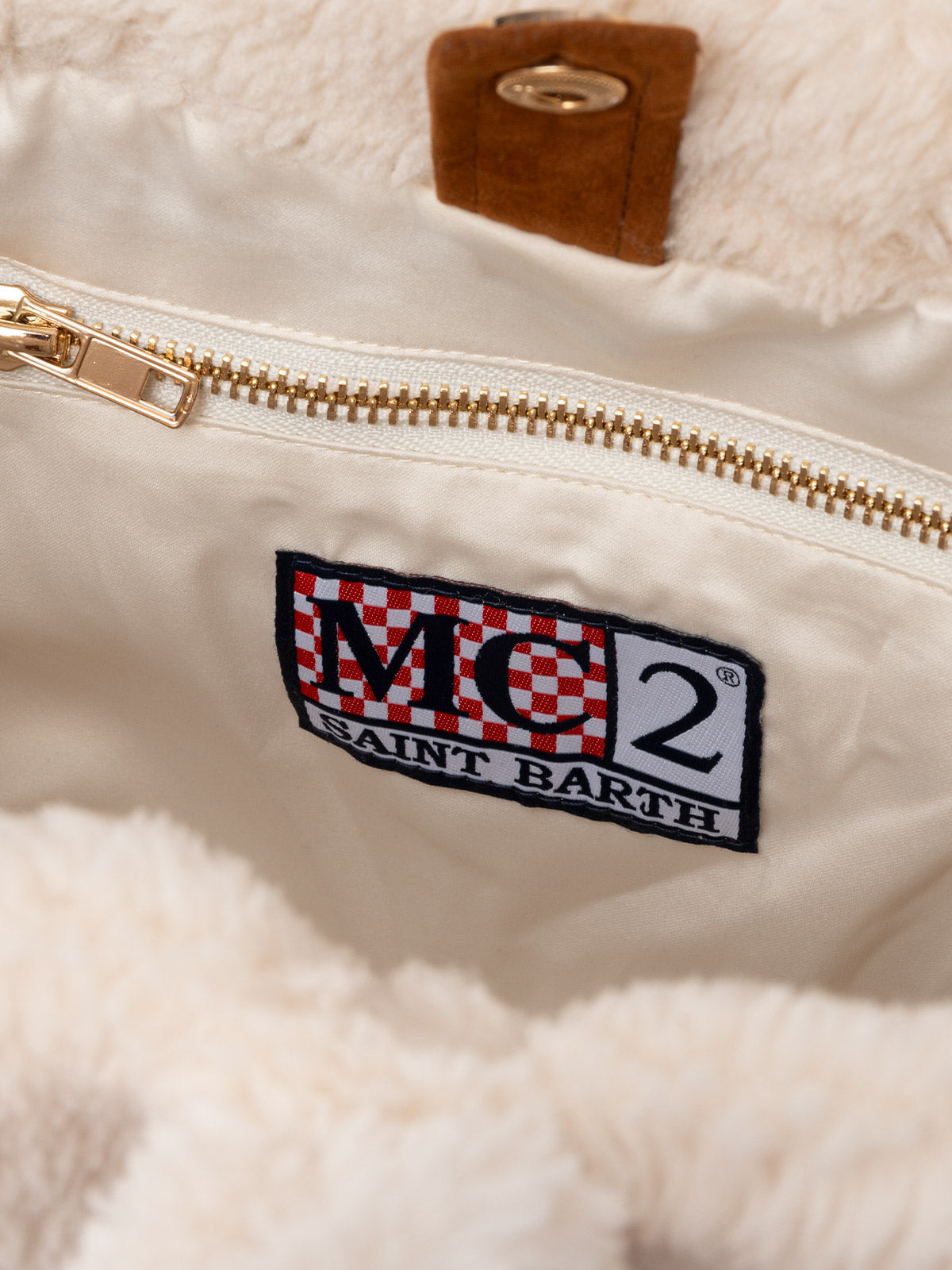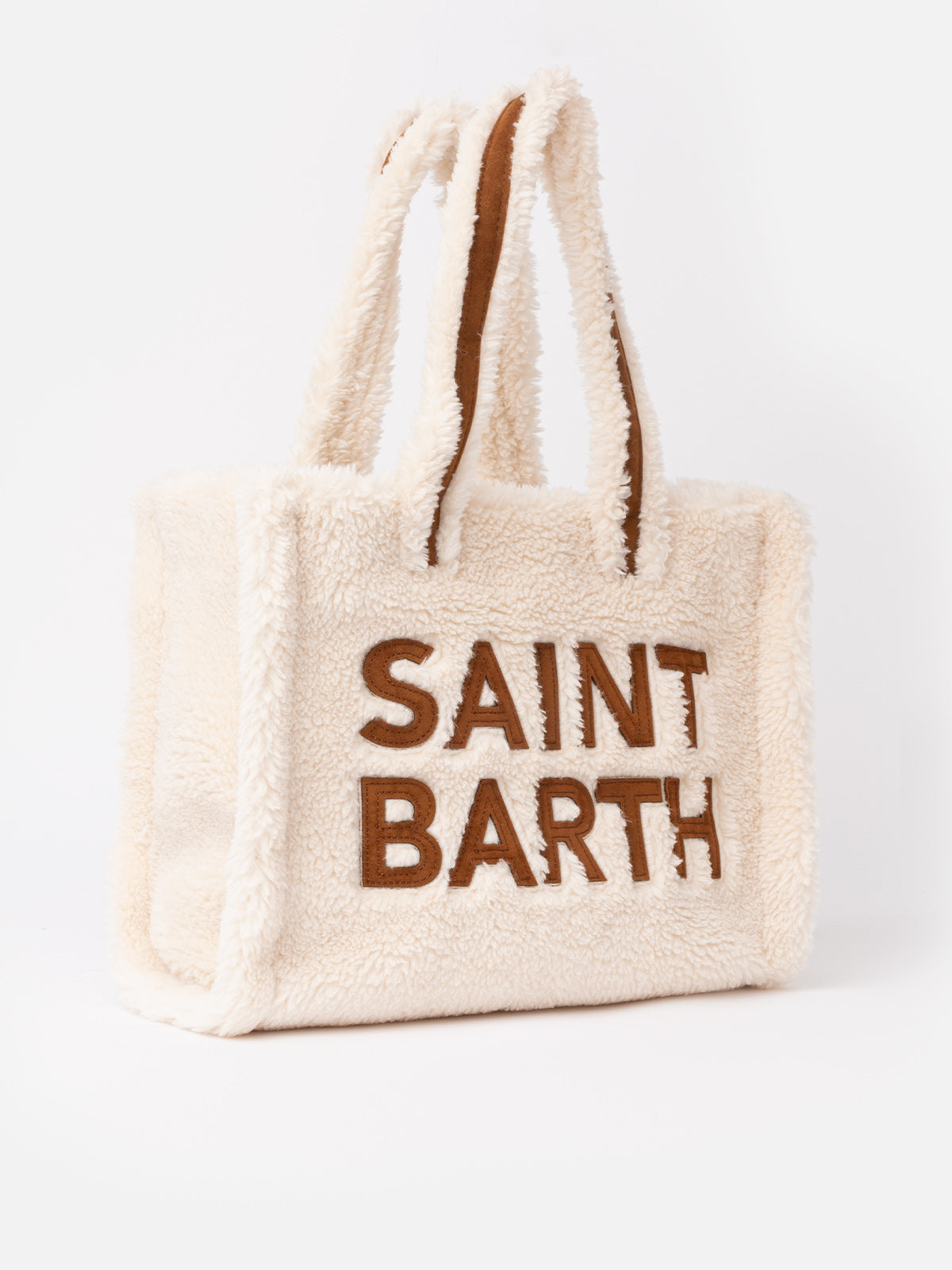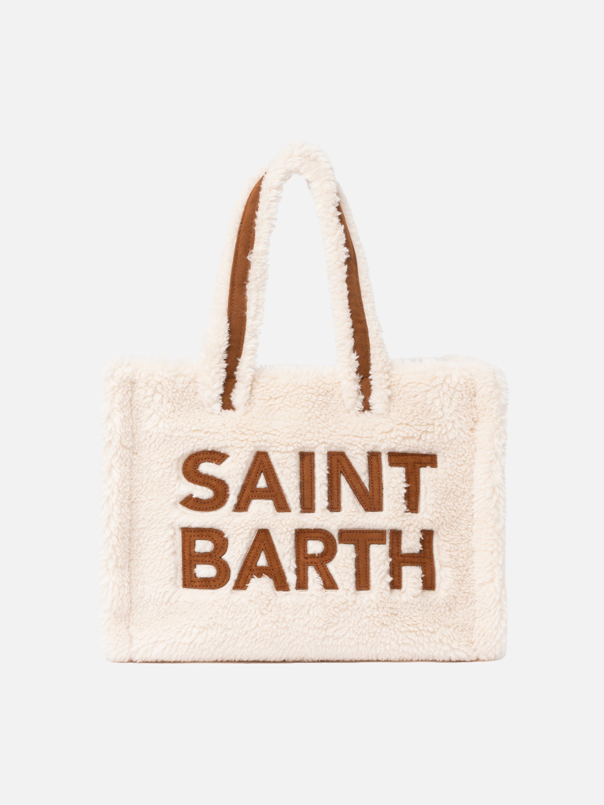 Borsa piccola morbida bianca Teddy con logo Saint Barth e tracolla