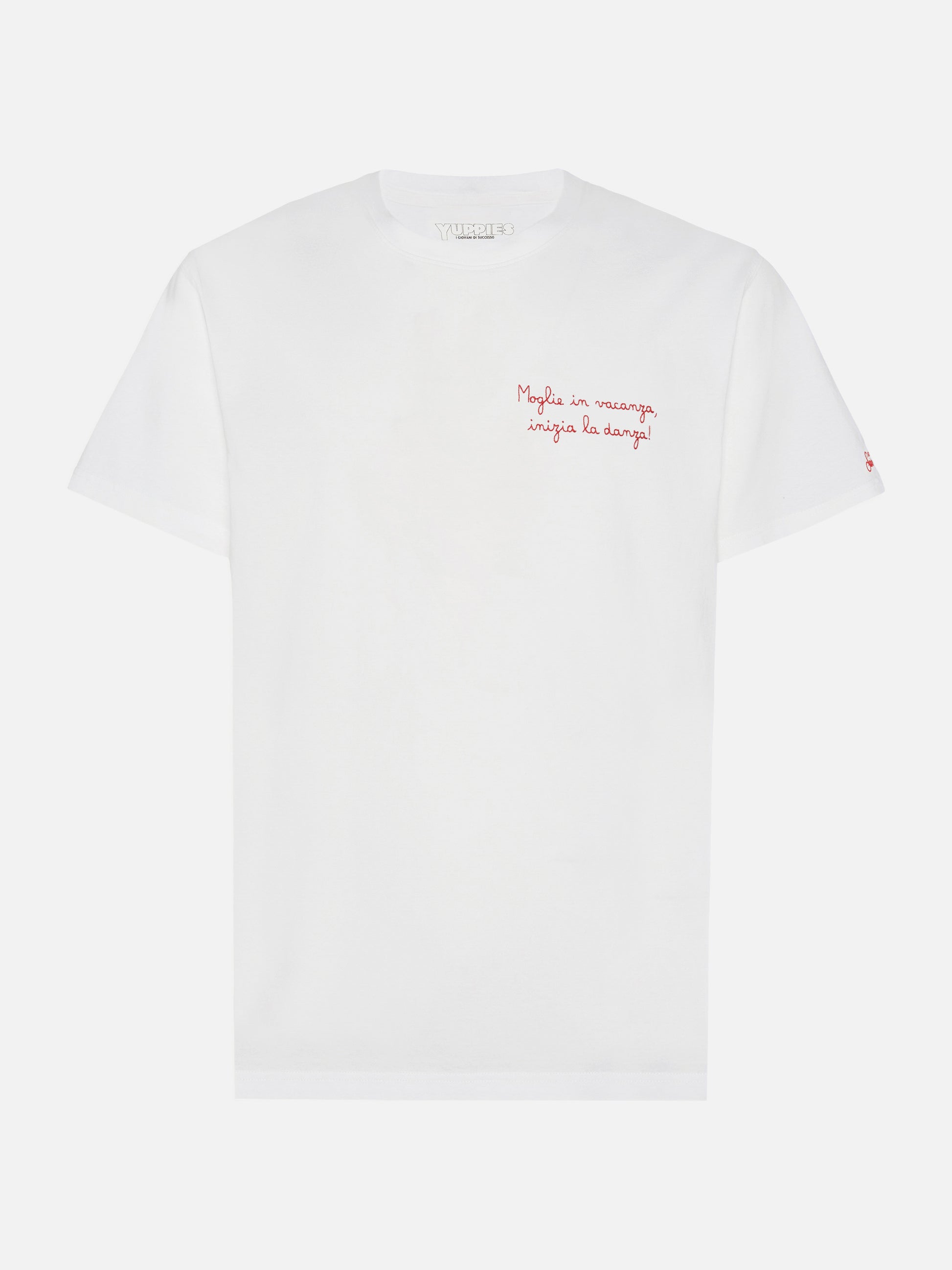 T-shirt in cotone Arnott con ricamo Moglie in Vacanza... | YUPPIES EDIZIONE SPECIALE