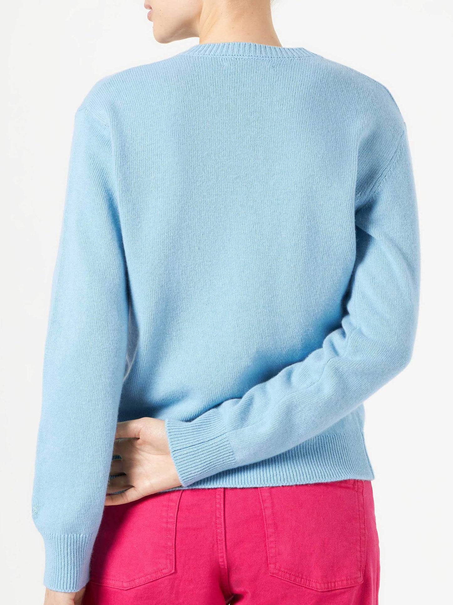 Maglione da donna girocollo di colore azzurro con stampa Compulsive Shopper