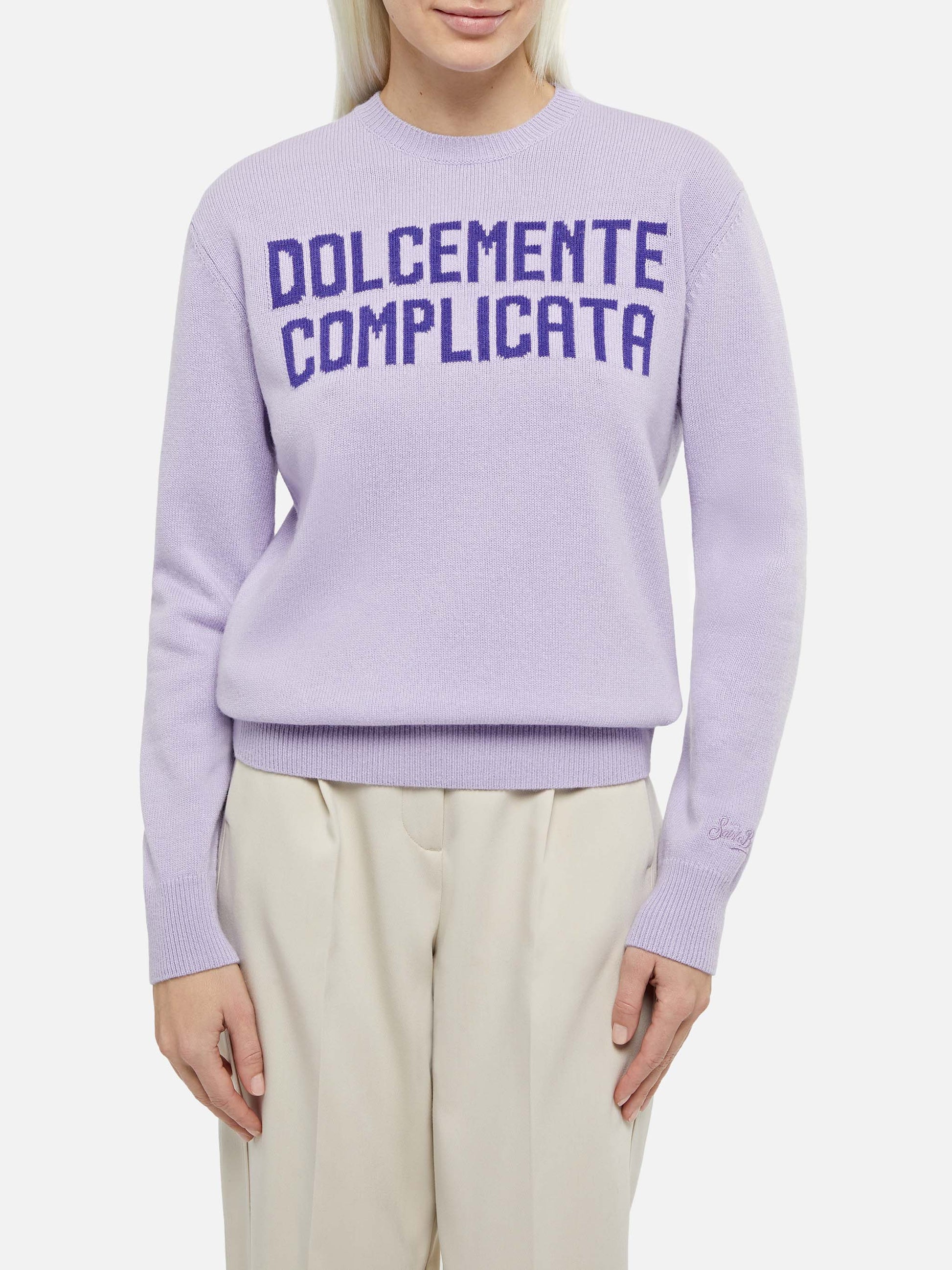 Maglione da donna viola New Queen con stampa Dolcemente Complicata