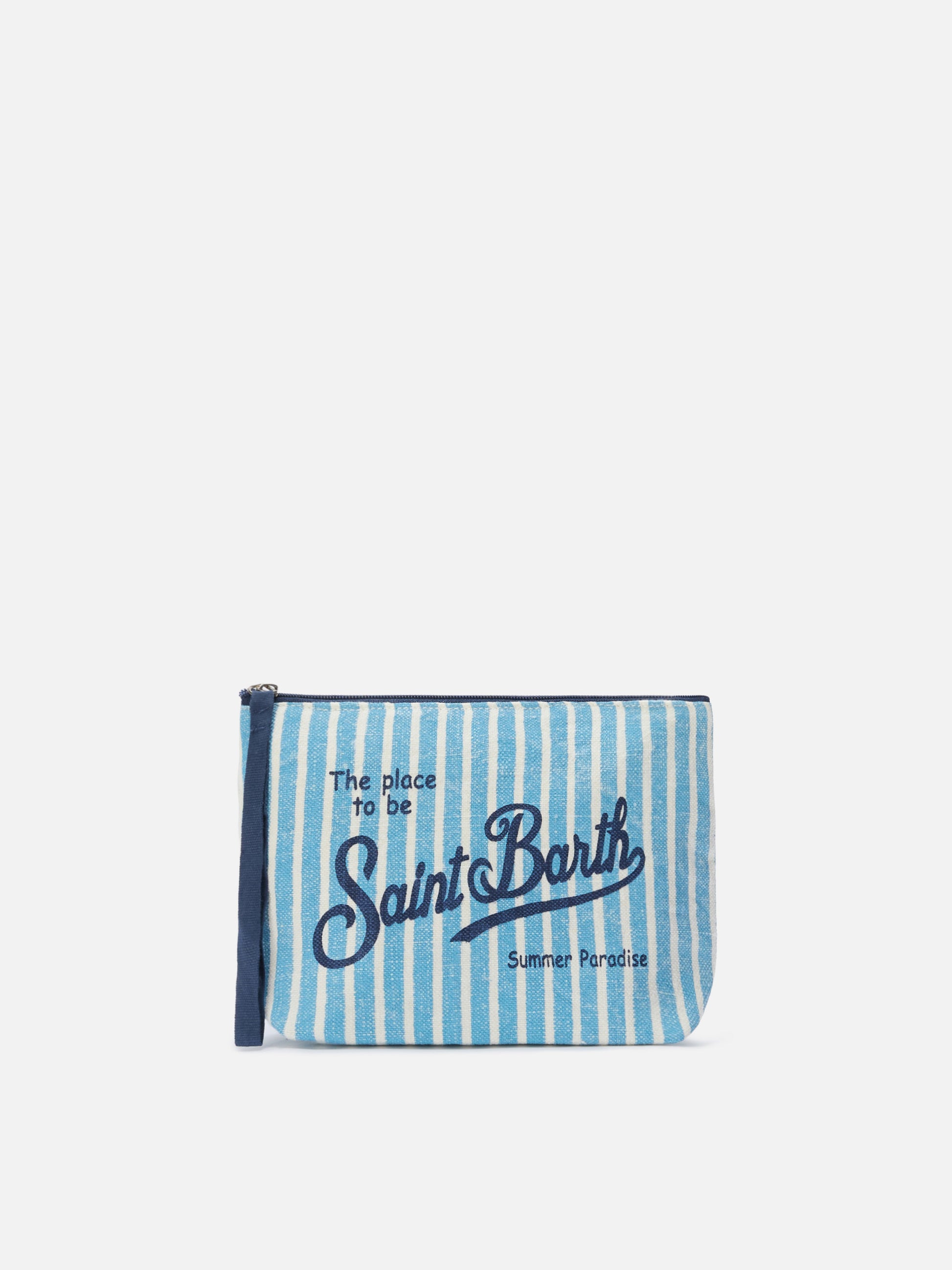 Aline linen pouch with light blue striped pattern
