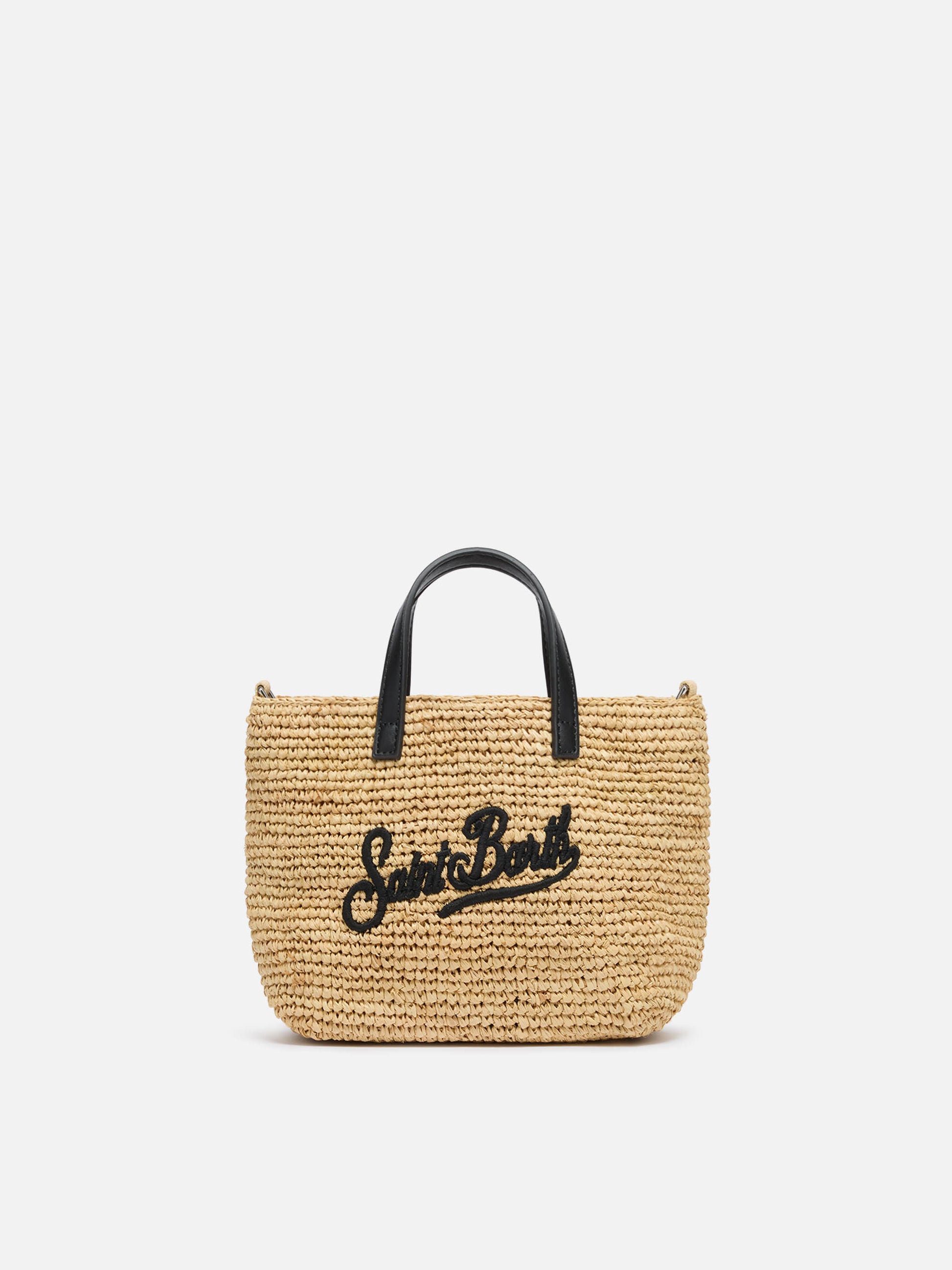 Beige Raffia City Mini bag with Saint Barth embroidery