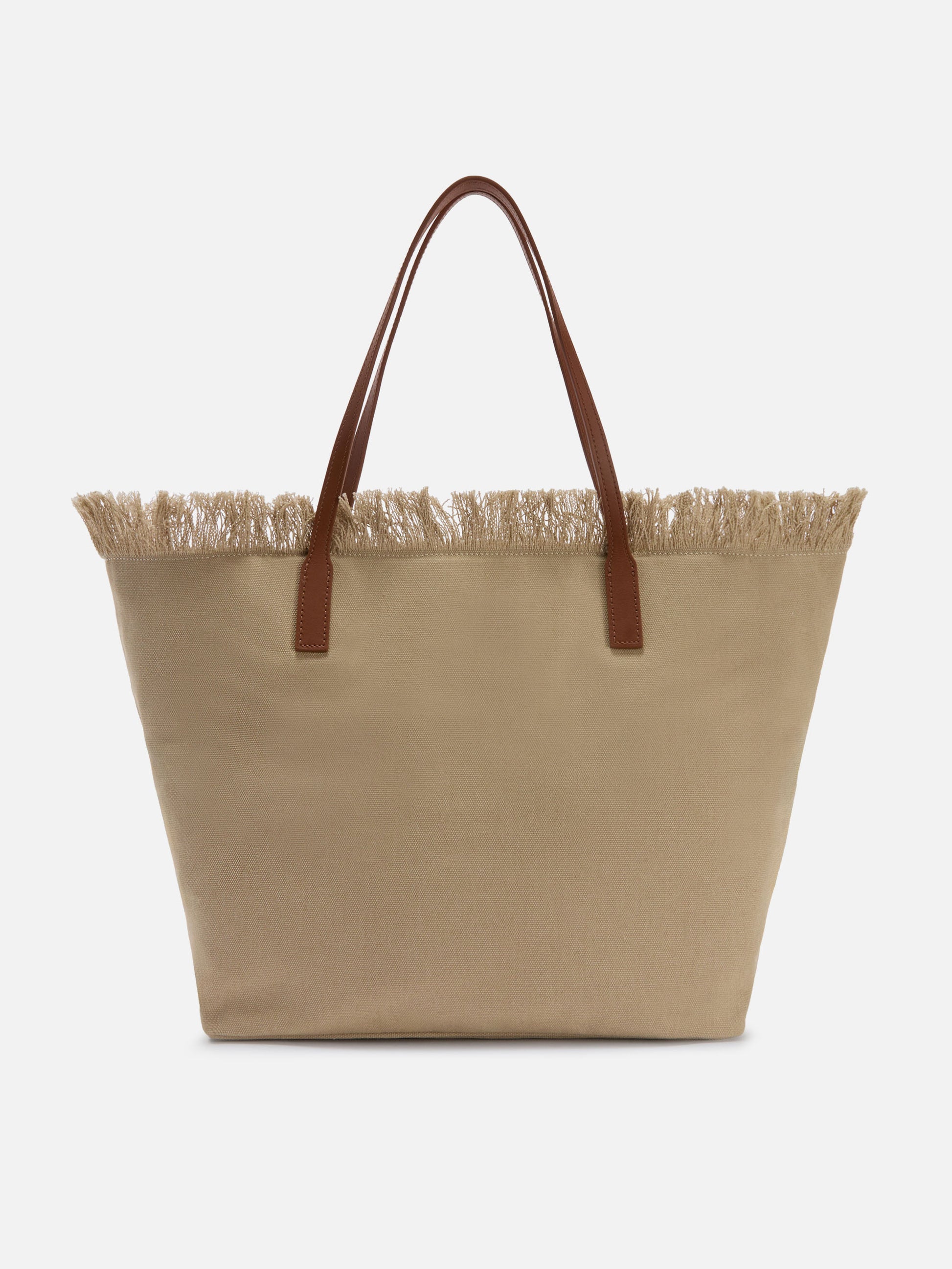 Beige regular City canvas bag with fringes
