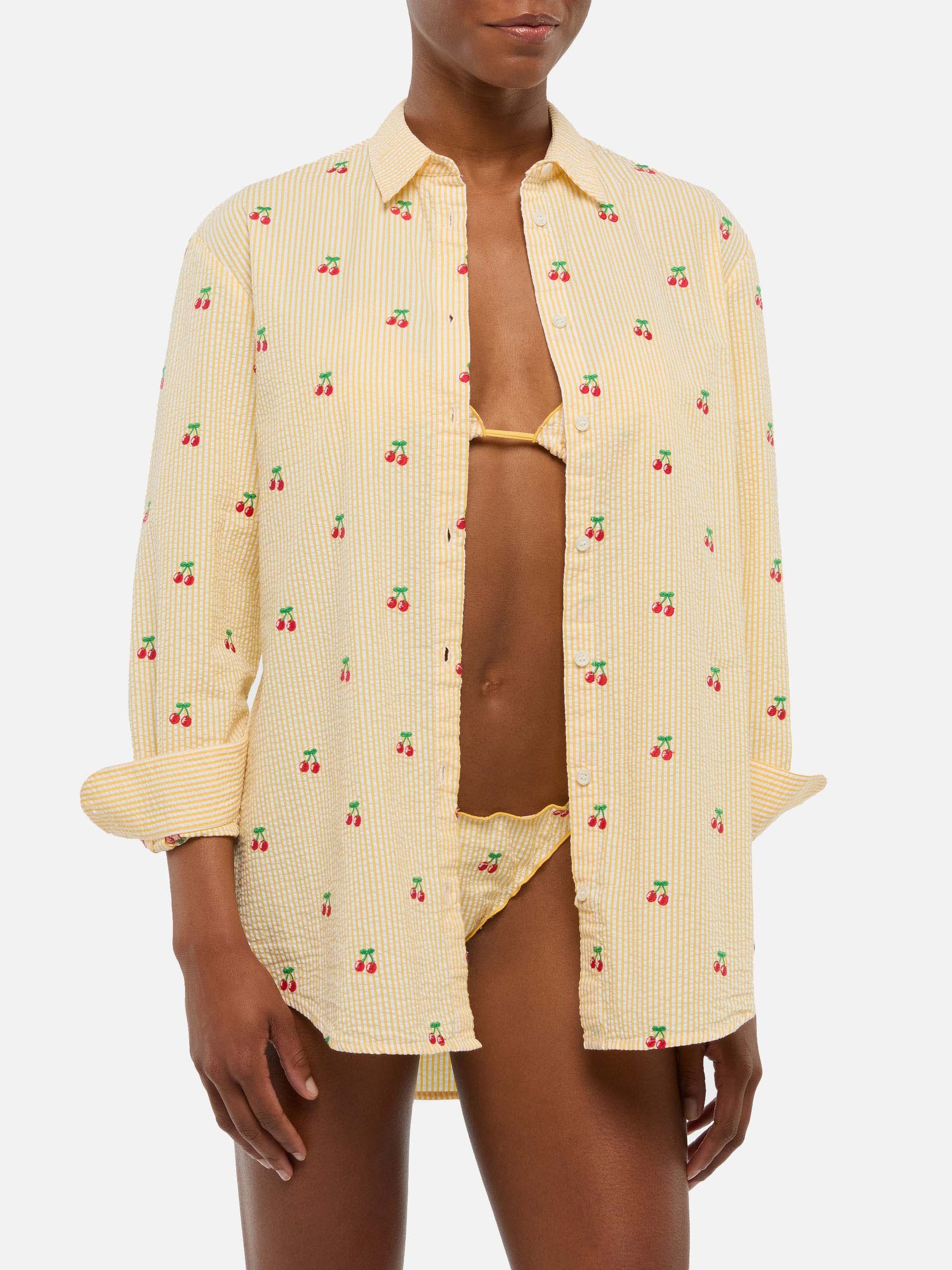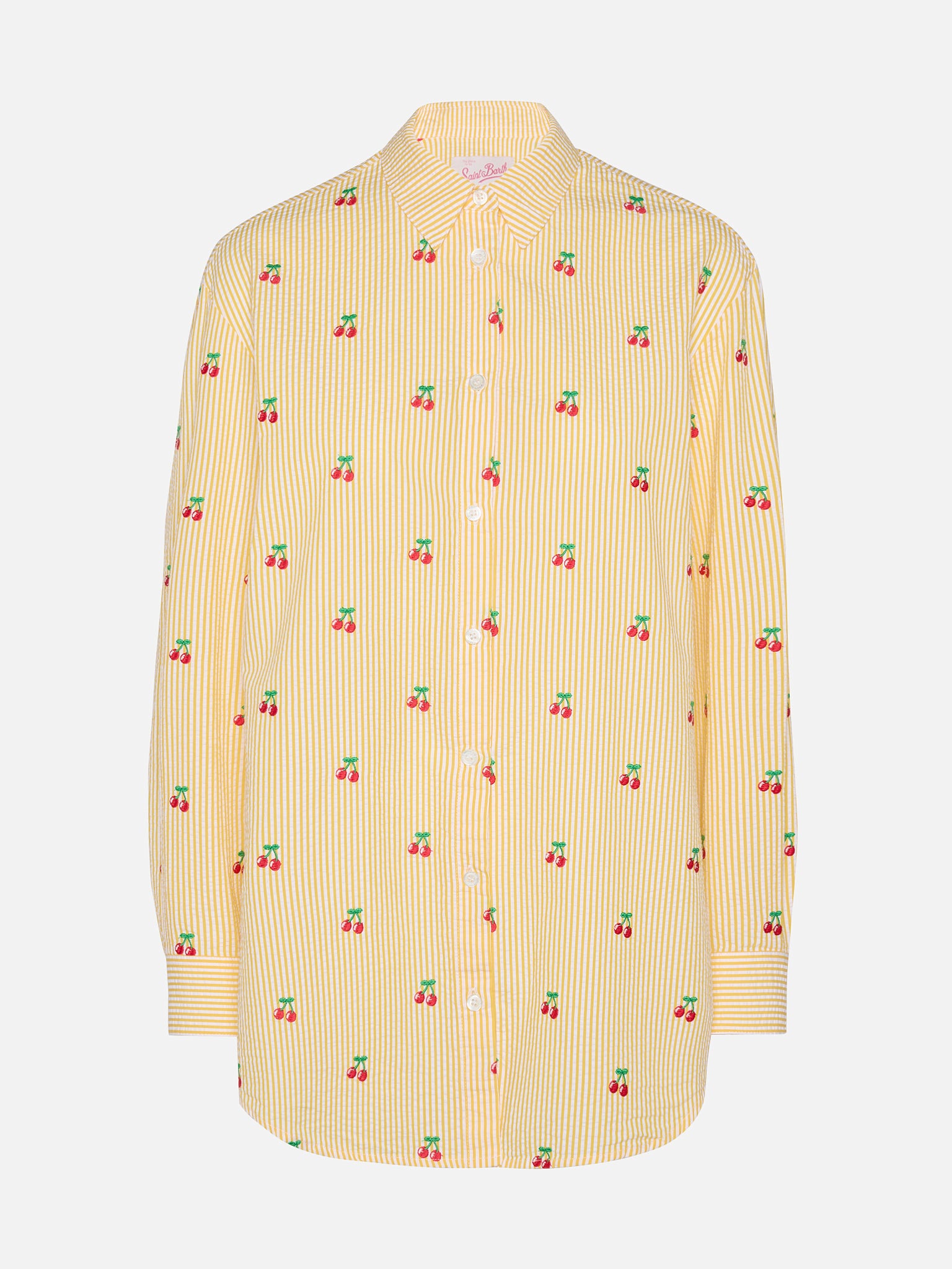 Brigitte striped-print seersucker shirt with Saint Barth embroidery