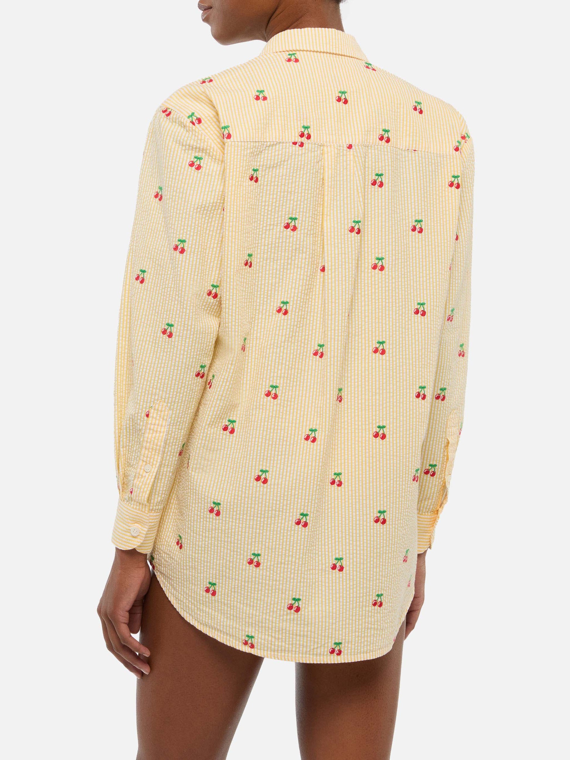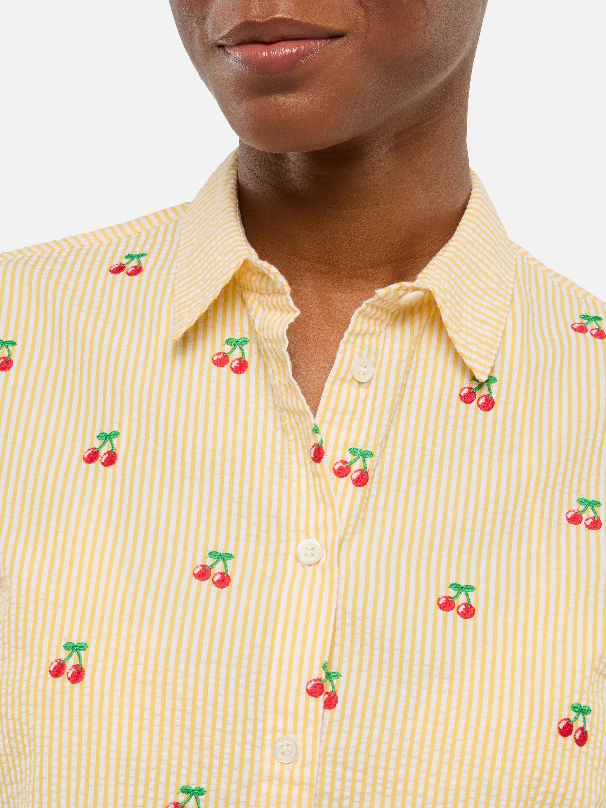 Sagittarius seersucker triangle top with striped print and cherry embroidery