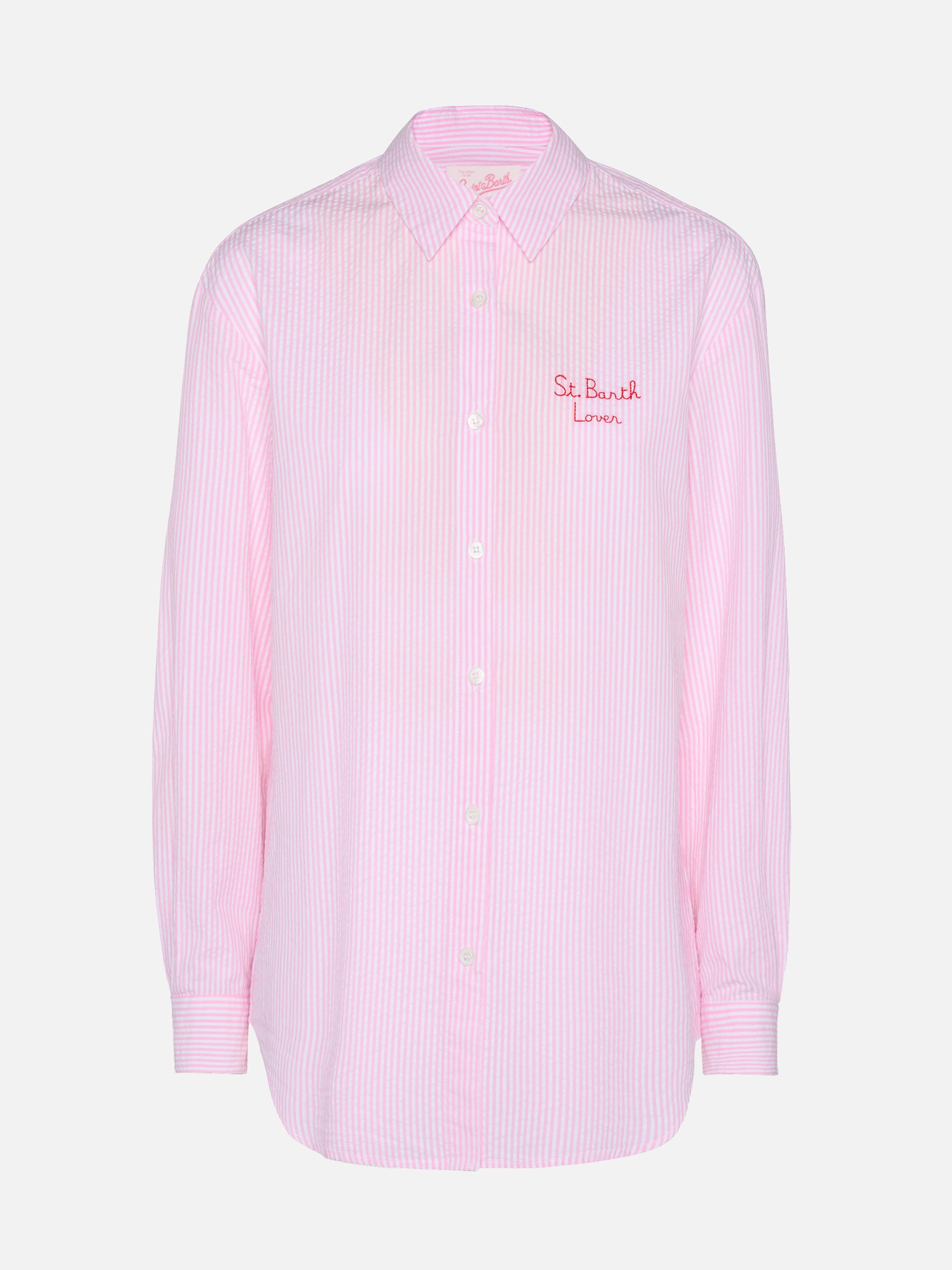 Our relaxed size-cut Brigitte shirt features a longer length compared to the classic fit, providing more room around the chest and waist. It's ideal for summer wear, whether worn alone as a beach cover-up or as a mini-dress, and can be paired with shorts, jeans, trousers or mini-skirts.
