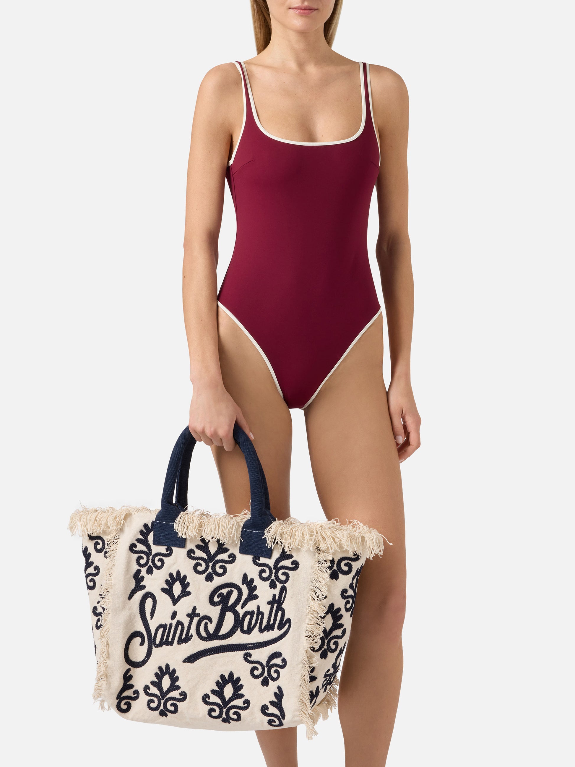 Canvas Vanity regular bag with blue lily tufting embroidery