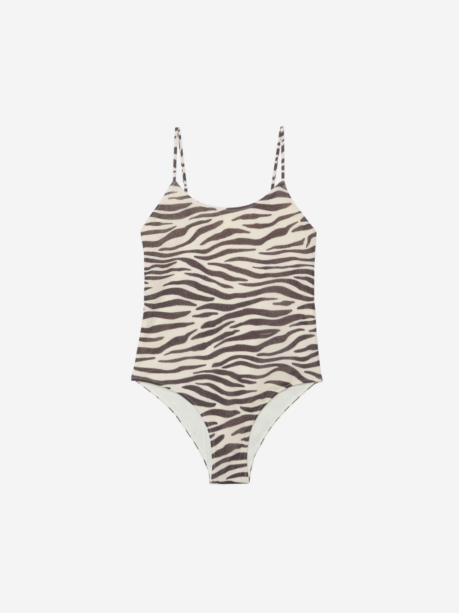 Cecille Jr one-piece lurex swimsuit with zebra print