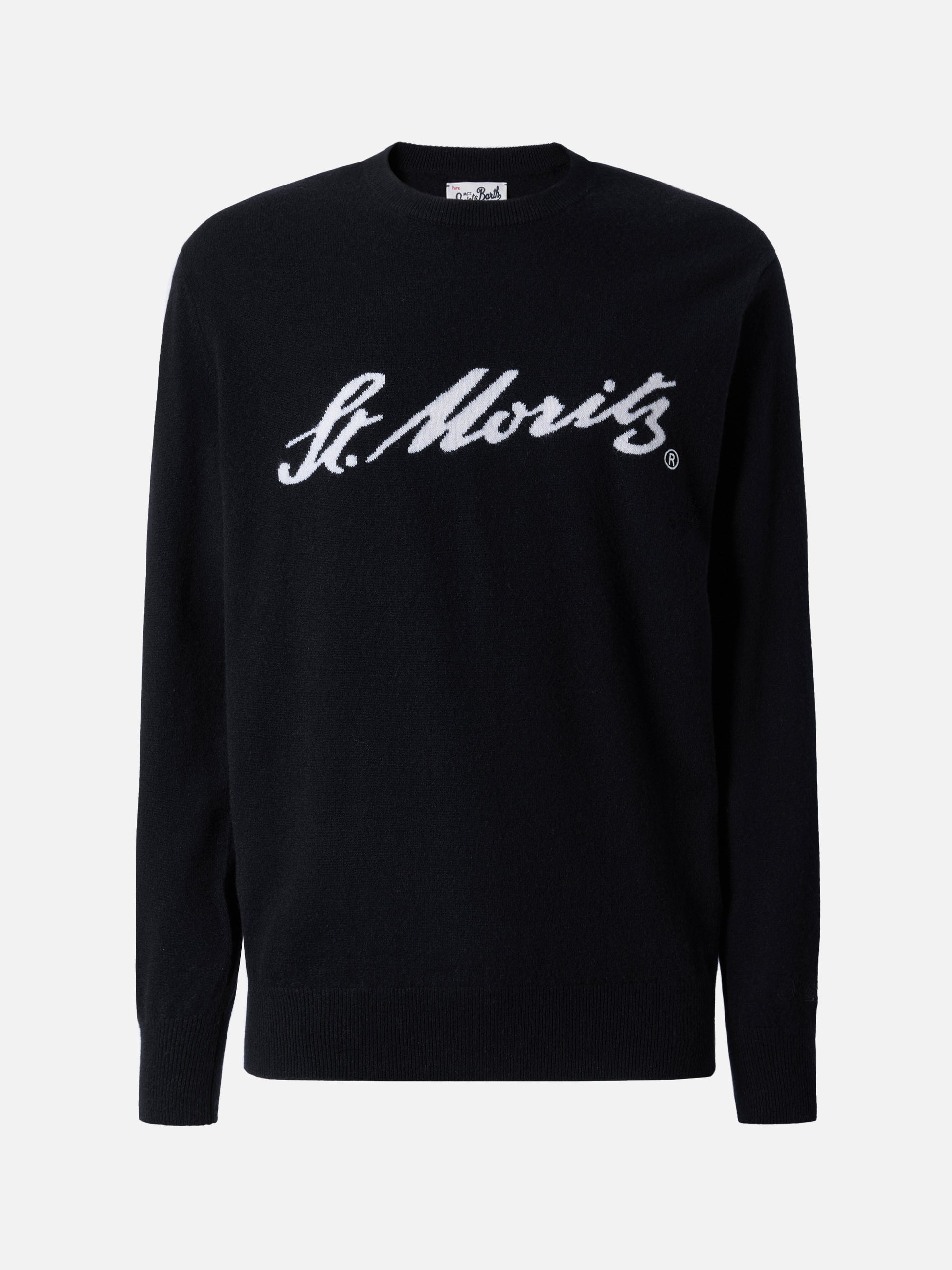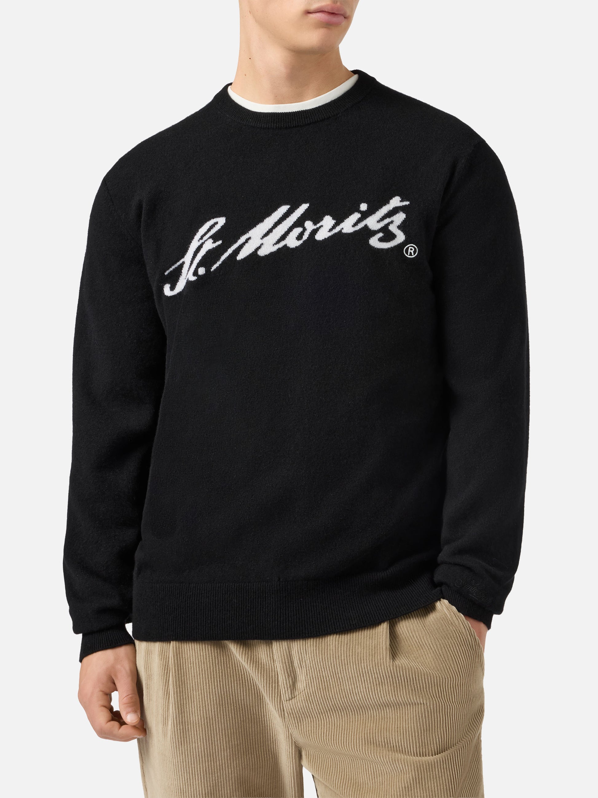 Heron Light sweater in 100% black CASHMERE with St. Moritz intarsia | ST. MORITZ TOP OF THE WORLD