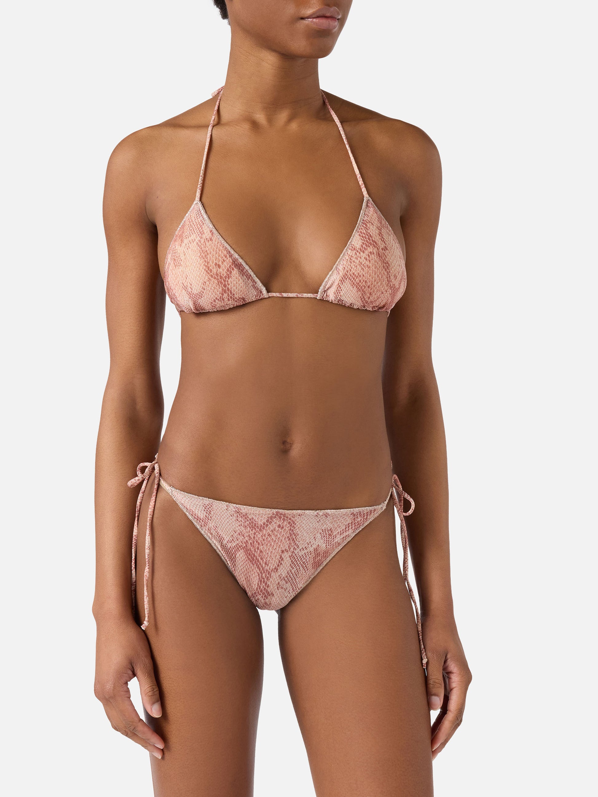 Leah Marielle Overlock python-print lurex bikini