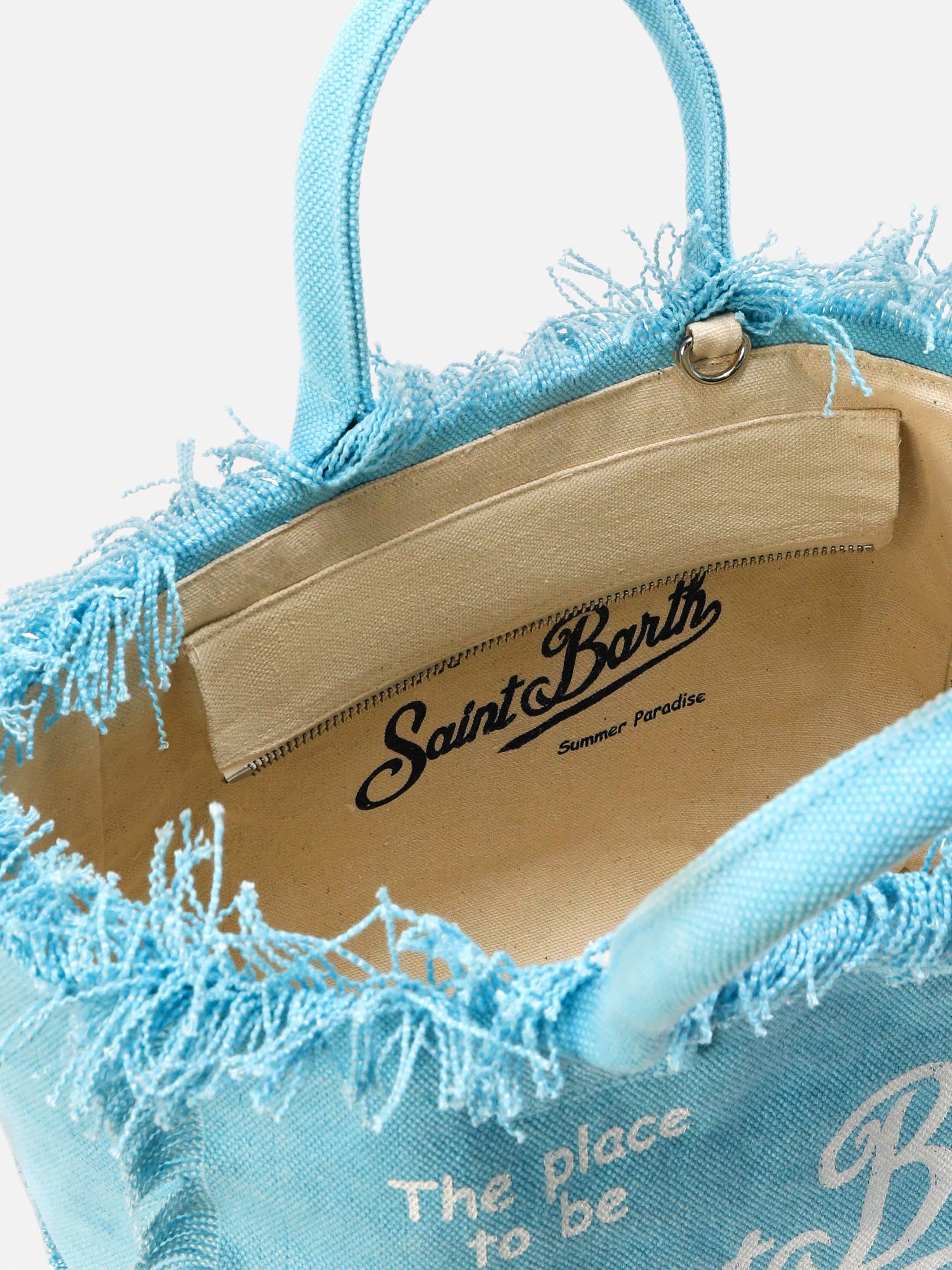 Light blue canvas Colette bag with fringes