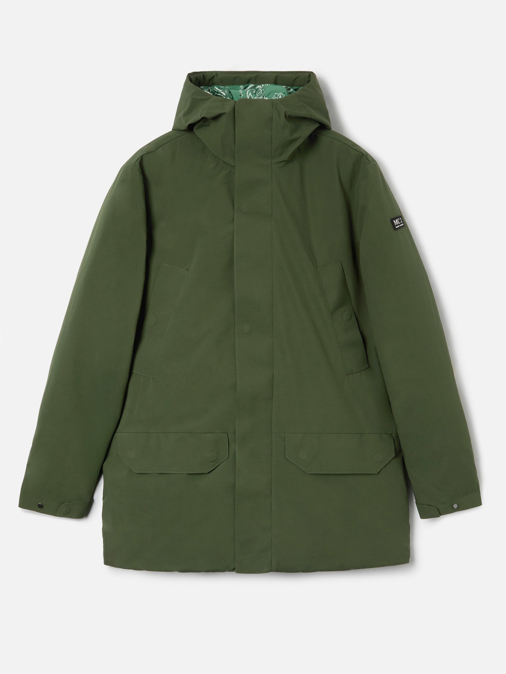 Man military green hooded parka Voyager with bandanna print