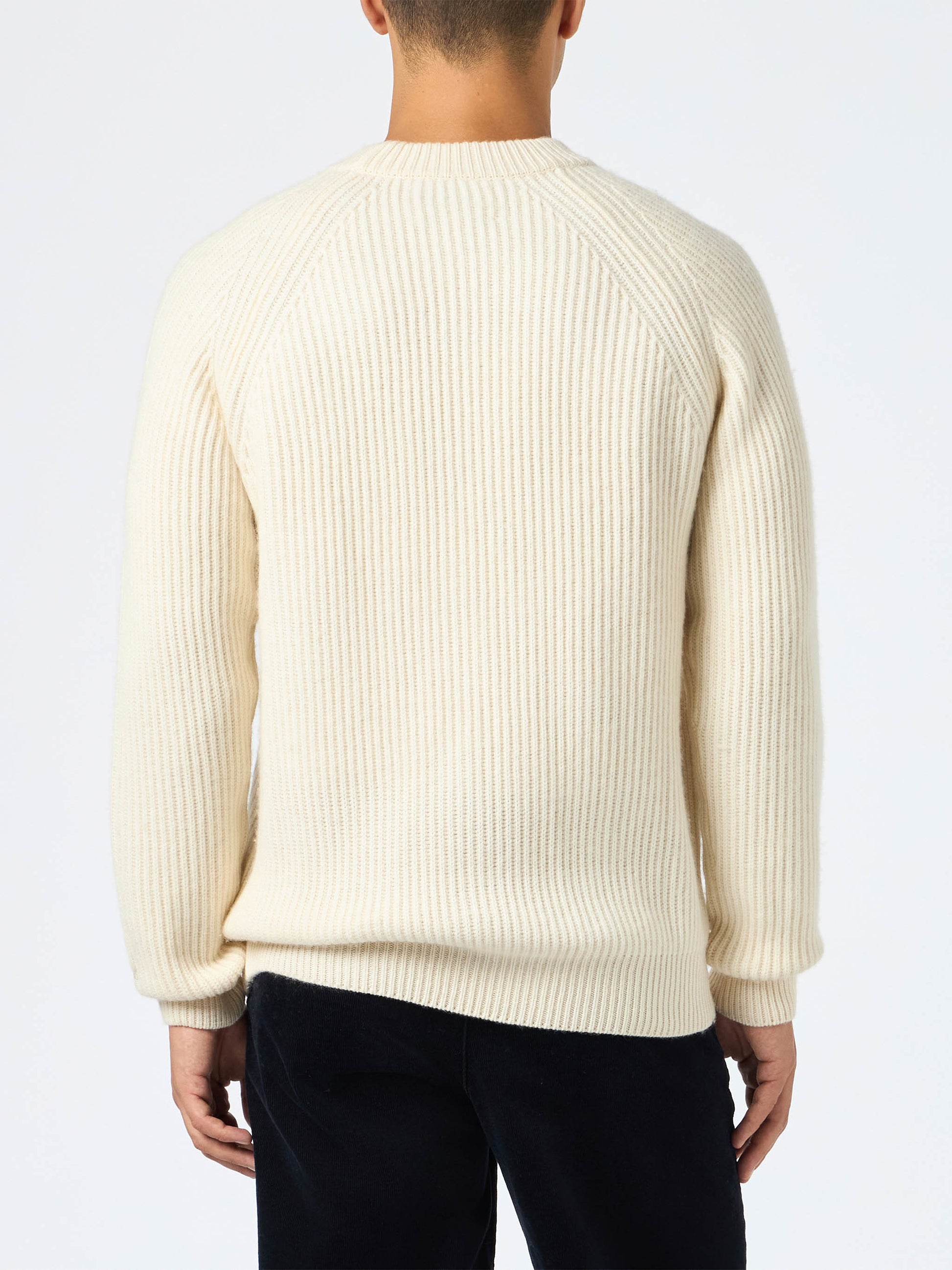 BLENDED CASHMERE white ribbed sweater Marine