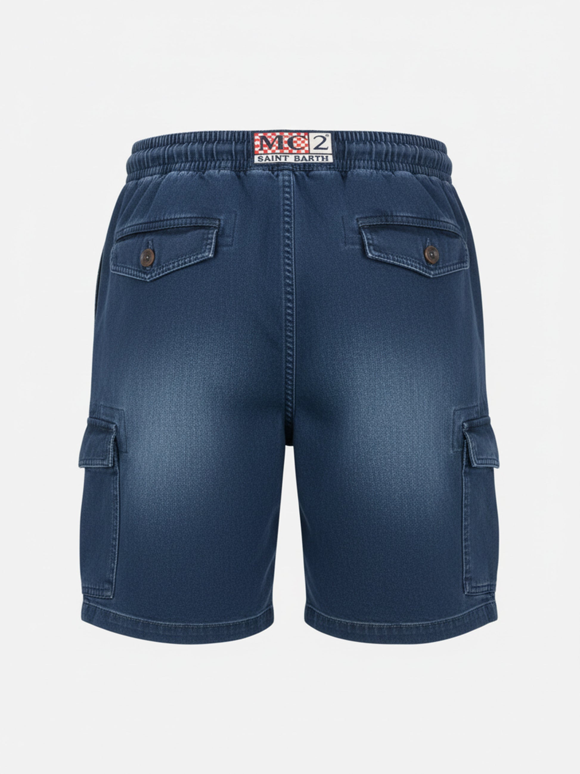Introducing Marseille Jr, the perfect blend of style and comfort. These boy's linen bermuda shorts feature an elasticized waistband with a drawstring for a secure fit. Designed for functionality, they include side pockets, a utility pocket on the left leg, and back pockets with flaps and button closures. The hidden button front closure ensures a seamless look, while the branded label on the back adds a refined touch. Boy bermuda shorts Denim fabric Elasticated waistband Drawstring closure French side pockets Utility pocket on the left leg Back pockets with button closure Back label with exclusive MC2 Saint Barth logo Regular fit Composition: 100% linen Size 6 years has a half waistband width of and 34 cm (stretched) and varies by 1/2 cm depending on the size; length of 36 cm (belt included) and varies by 1,5/3 cm for each size, depending on the size Please note that all measurements provided are approximate and subject to a tolerance of 1-2 cm due to manual measurement. This tolerance range is normal and should be expected.