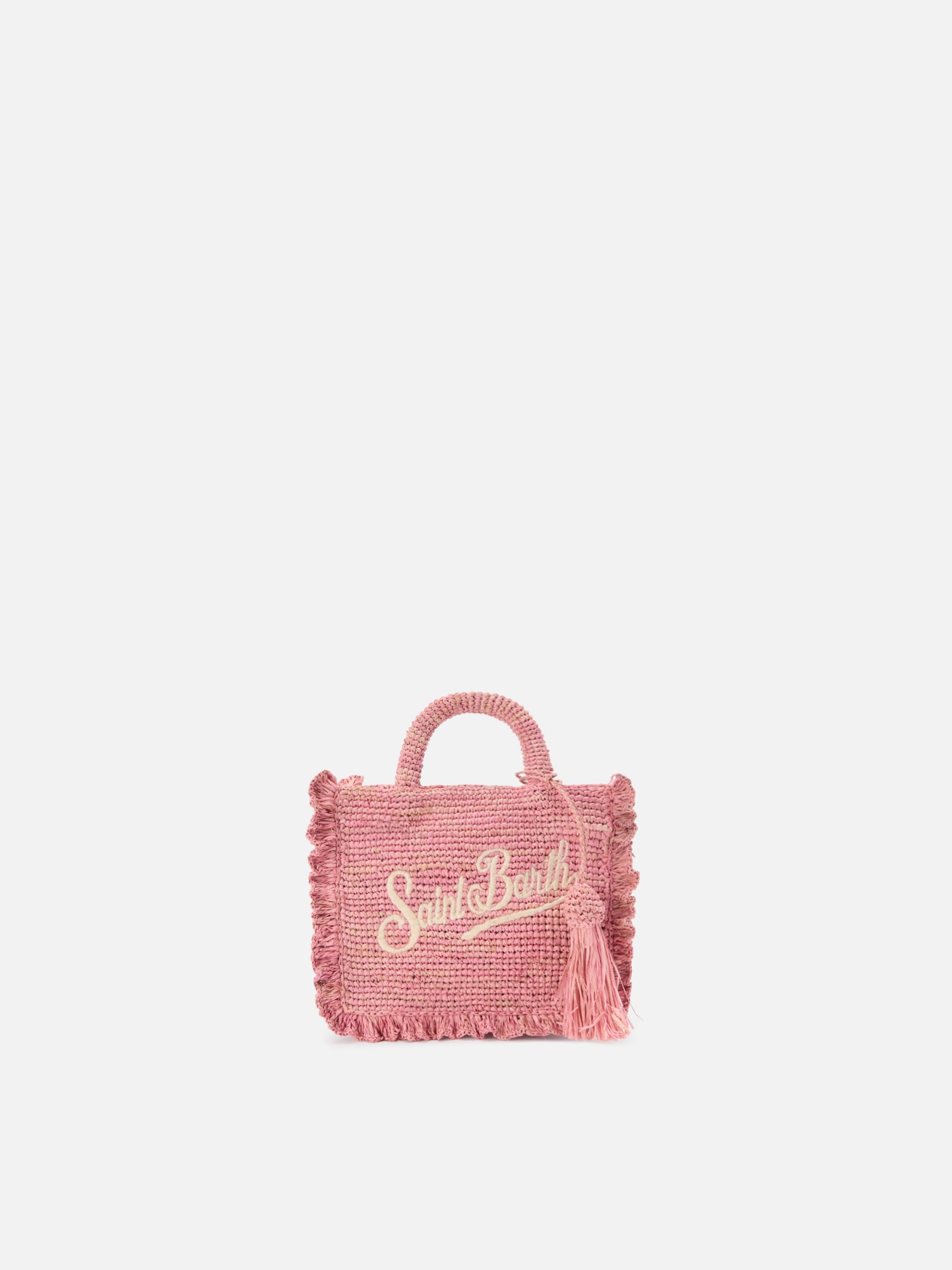 Pink Volant Mini raffia bag with embroidered logo