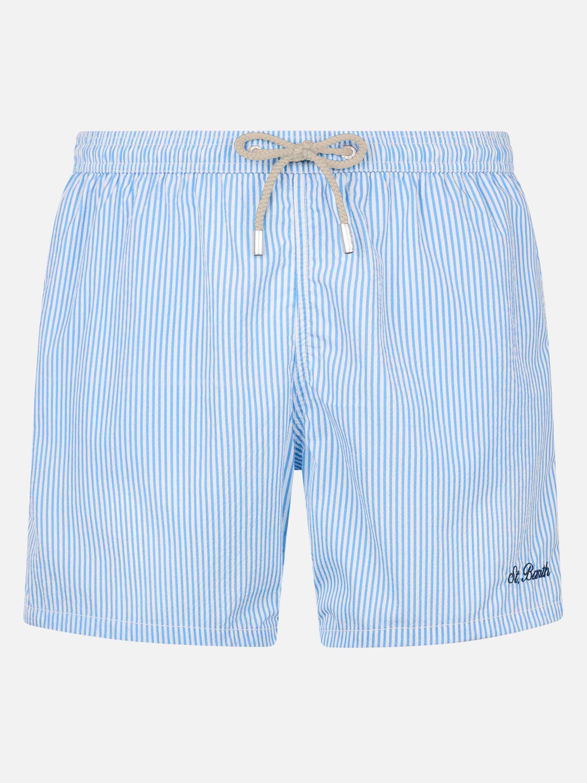 Seersucker light blue striped swim shorts Patmos