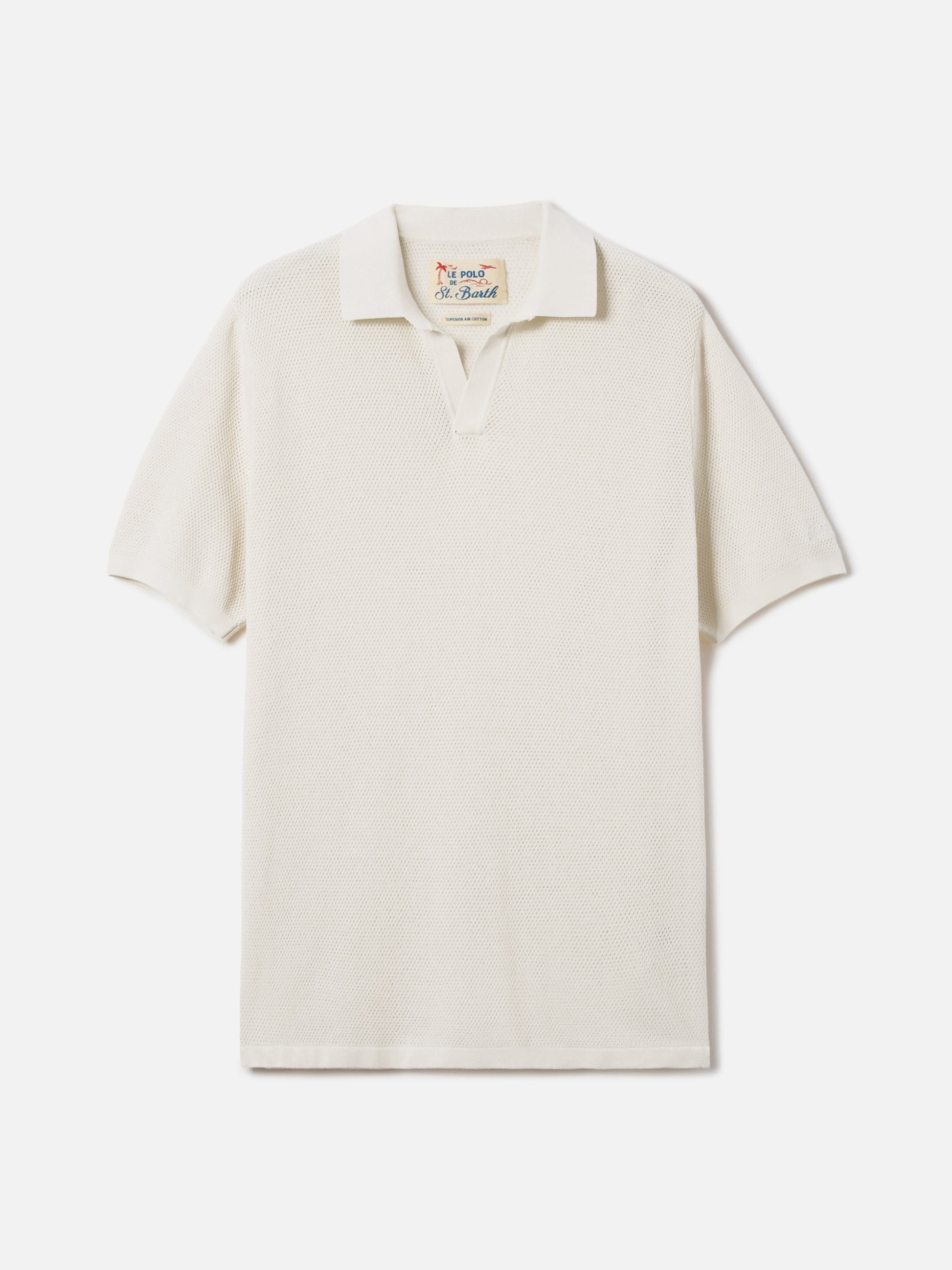 Round Jetleg beige linen weekender with contrasting embroidered logo