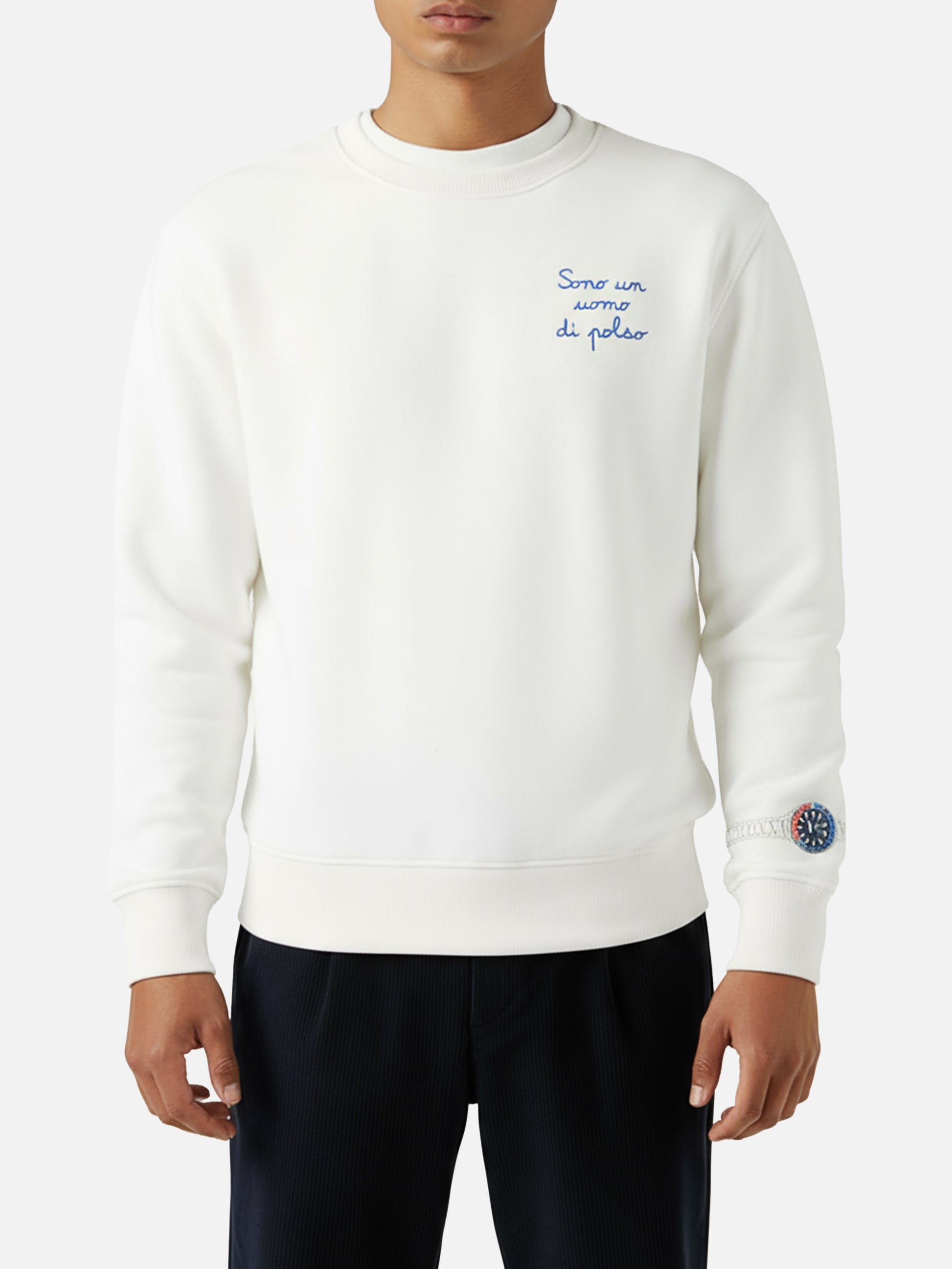 Soho cotton sweatshirt in white with wrist watch print and embroidery
