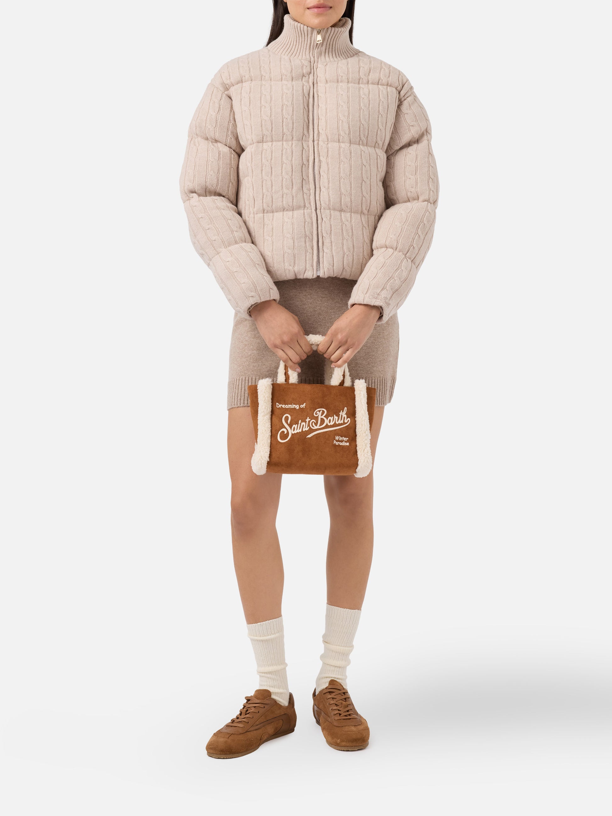 Vanity Mini Shearling Soft Handbag in camel shearling