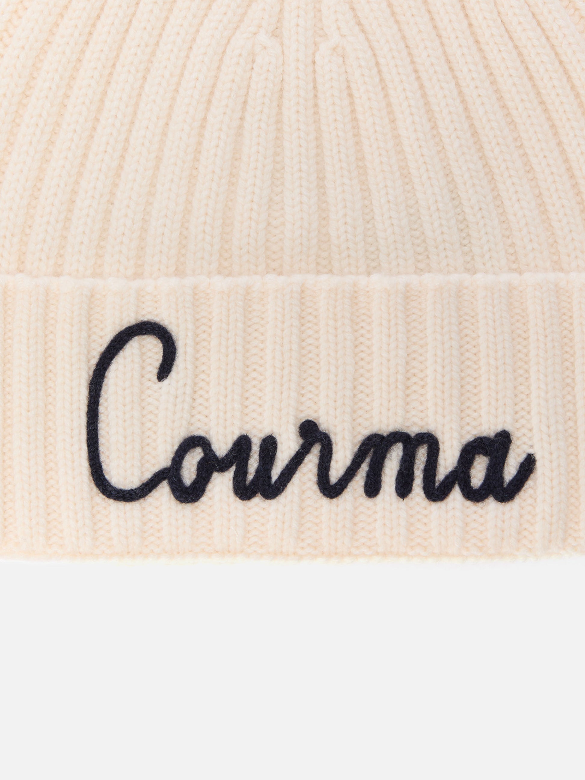 Wengen beanie in cashmere blend in white with Courma embroidery