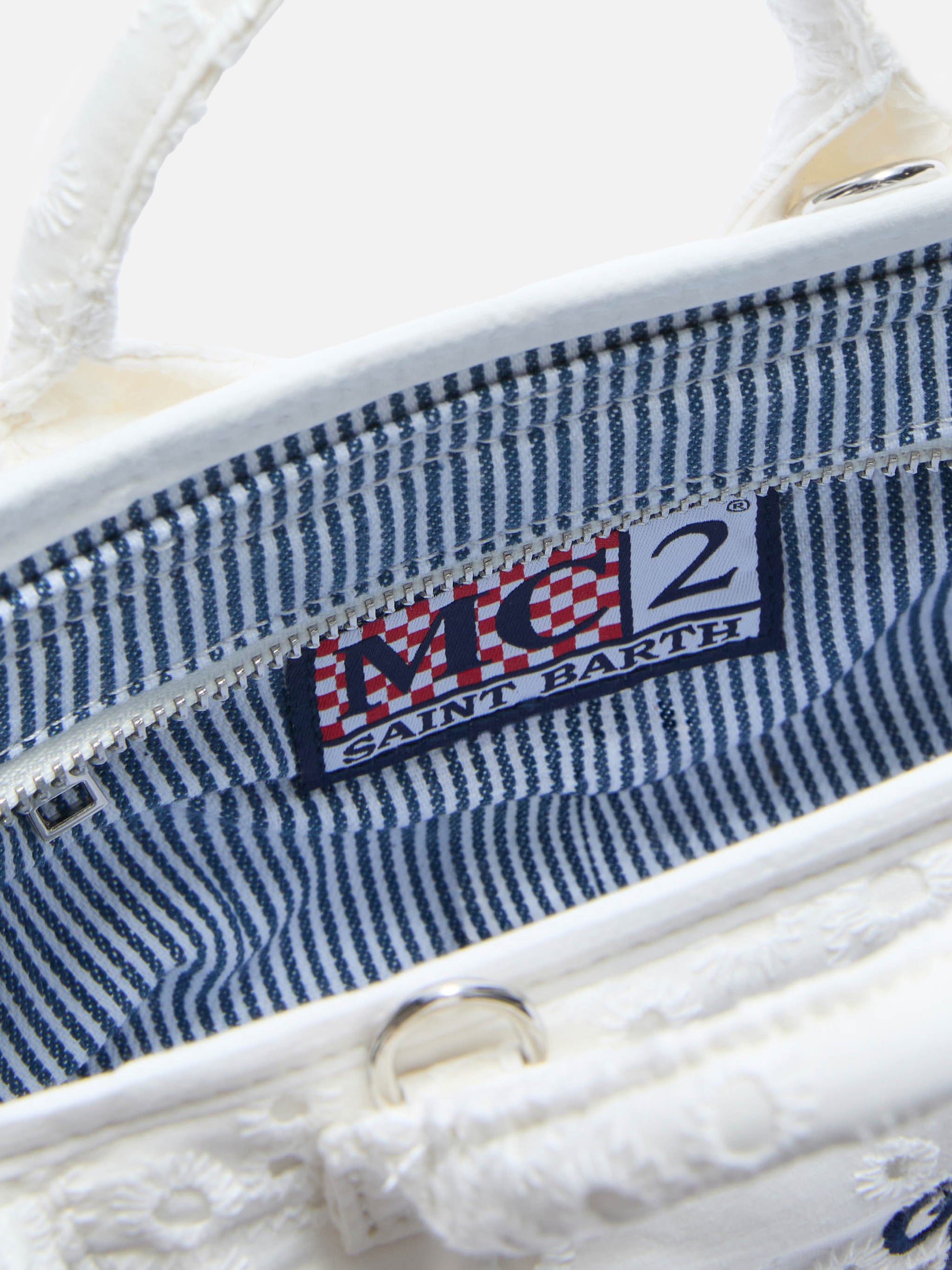 White Vanity mini volant bag in broderie anglaise cotton