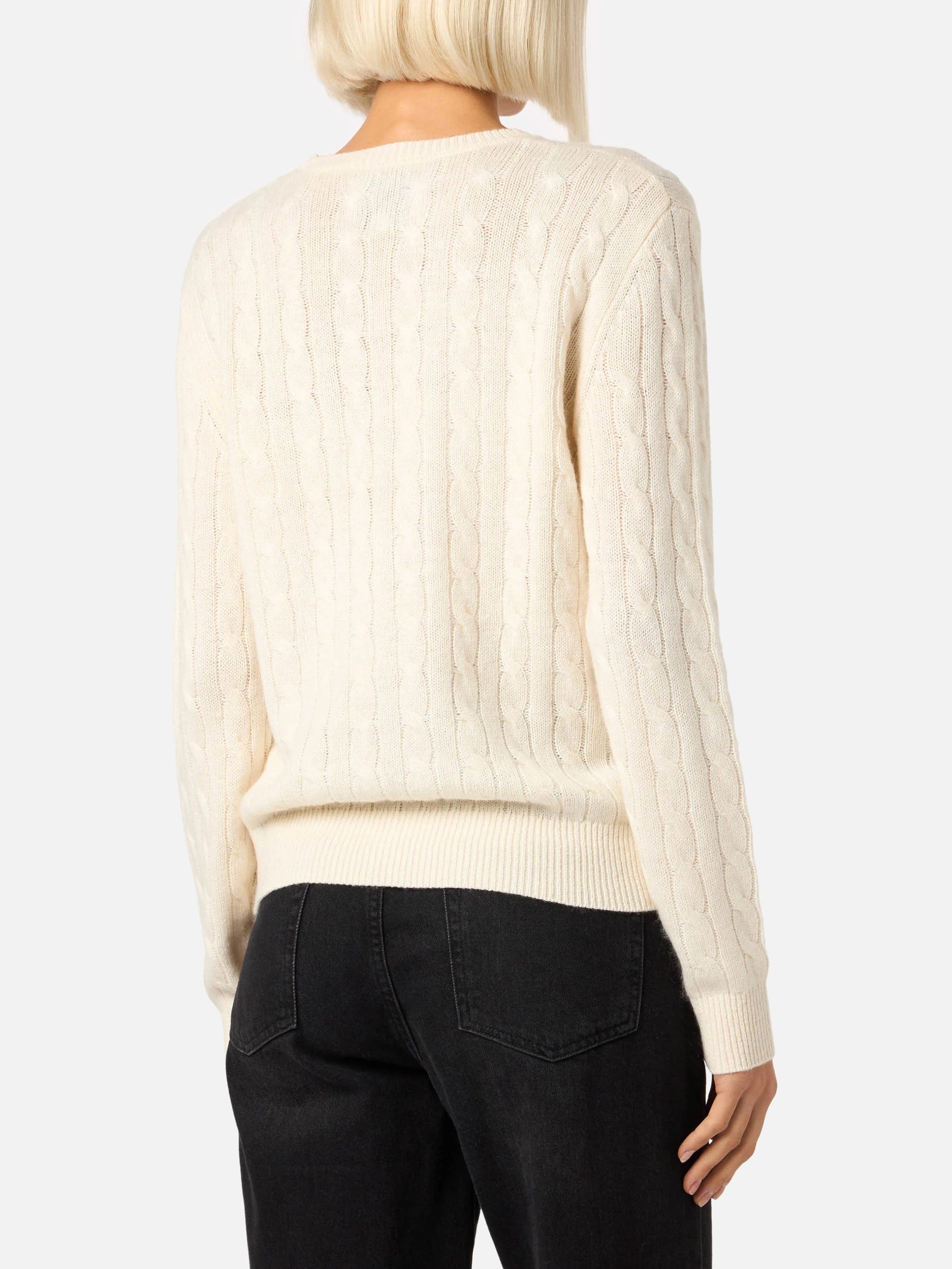 Woman off-white cashmere blend cable knit sweater Sorbonne